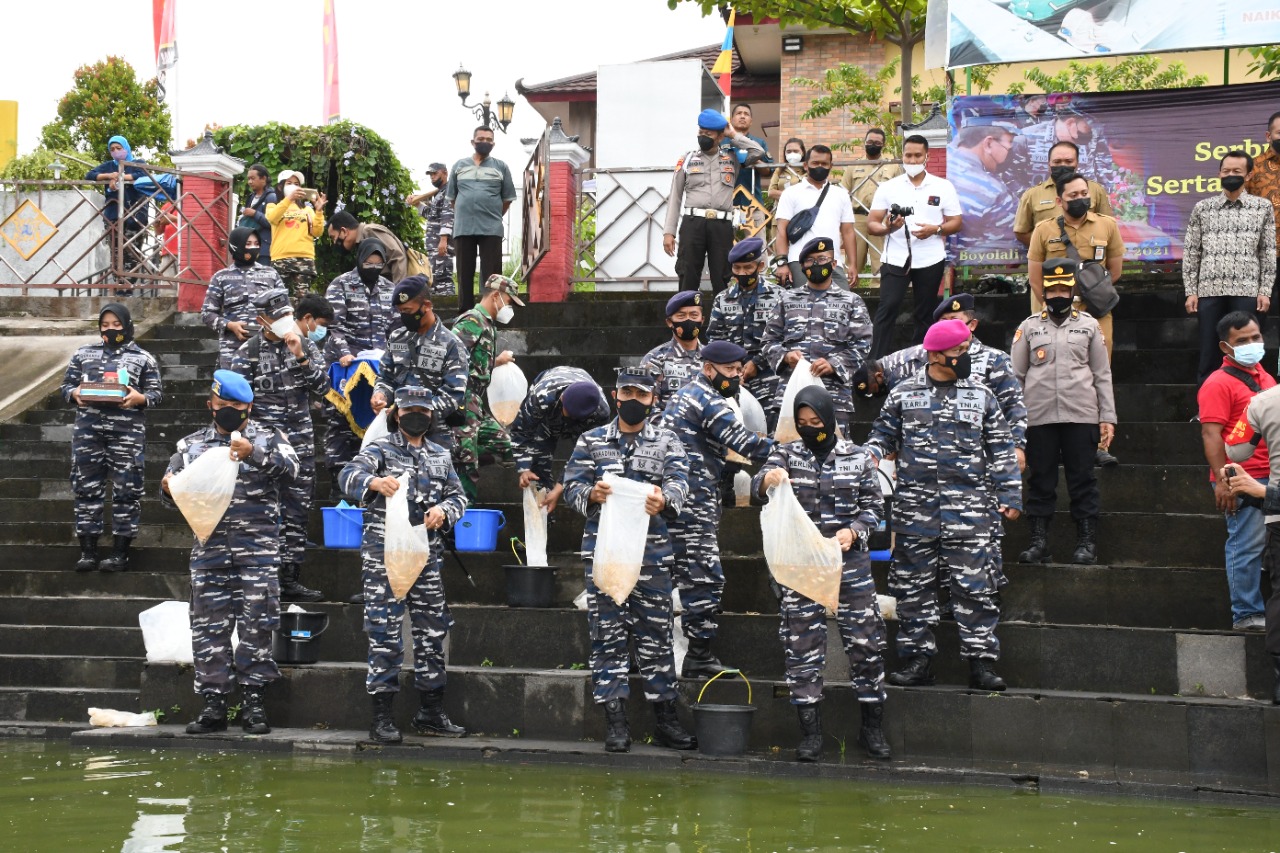 Komandan Pangkalan TNI Angkatan Laut (Danlanal) Yogyakarta Kolonel Laut (KH/W) Damayanti, S.H., M.M., CHRMP. mendampingi Danlantamal V Komandan Pangkalan Utama TNI Angkatan Laut (Danlantamal) V Laksma TNI Yoos Suryono Hadi, M.Tr.(Han)., M.Tr.Opsla., CHRMP., dalam Serbuan Maritim Sejuta Pohon dan Pelepasan Benih Ikan Air Tawar di Boyolali dalam rangka Hari Maritim tahun 2021, yang mengambil tempat di Desa Giriroto Kecamatan Ngemplak Kabupaten Boyolali Jawa Tengah. Selasa (16/11/2021).