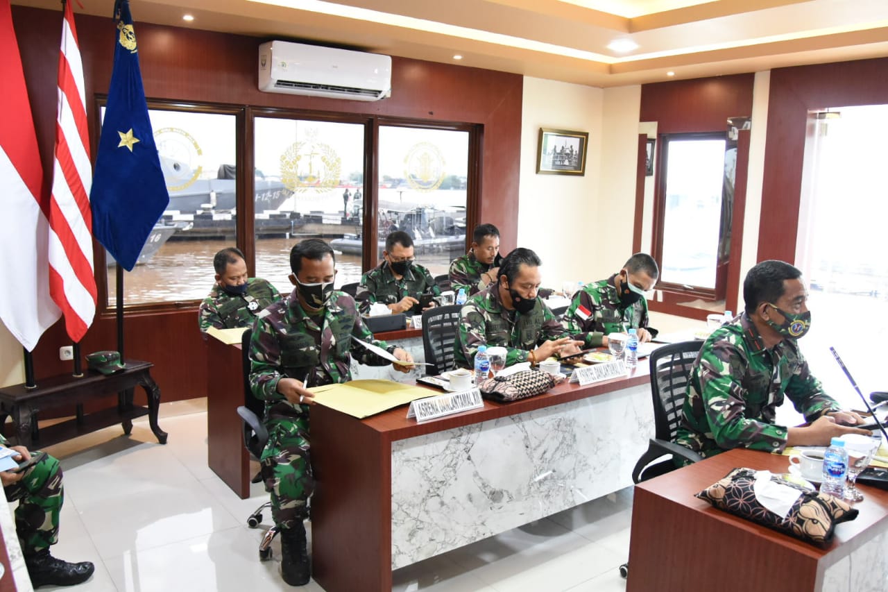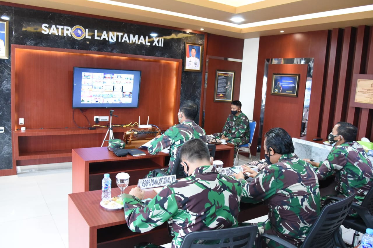 Komandan Lantamal XII Pontianak, Brigadir Jenderal TNI (Mar) Andi Rukman dengan didampingi para Asisten di ruang Puskodalops Satrol Lantamal XII, Jln. Komyos Sudarso No. Jruju Kota Pontianak, melaksanakan Vicon Focus Grup Discussion (FGD).