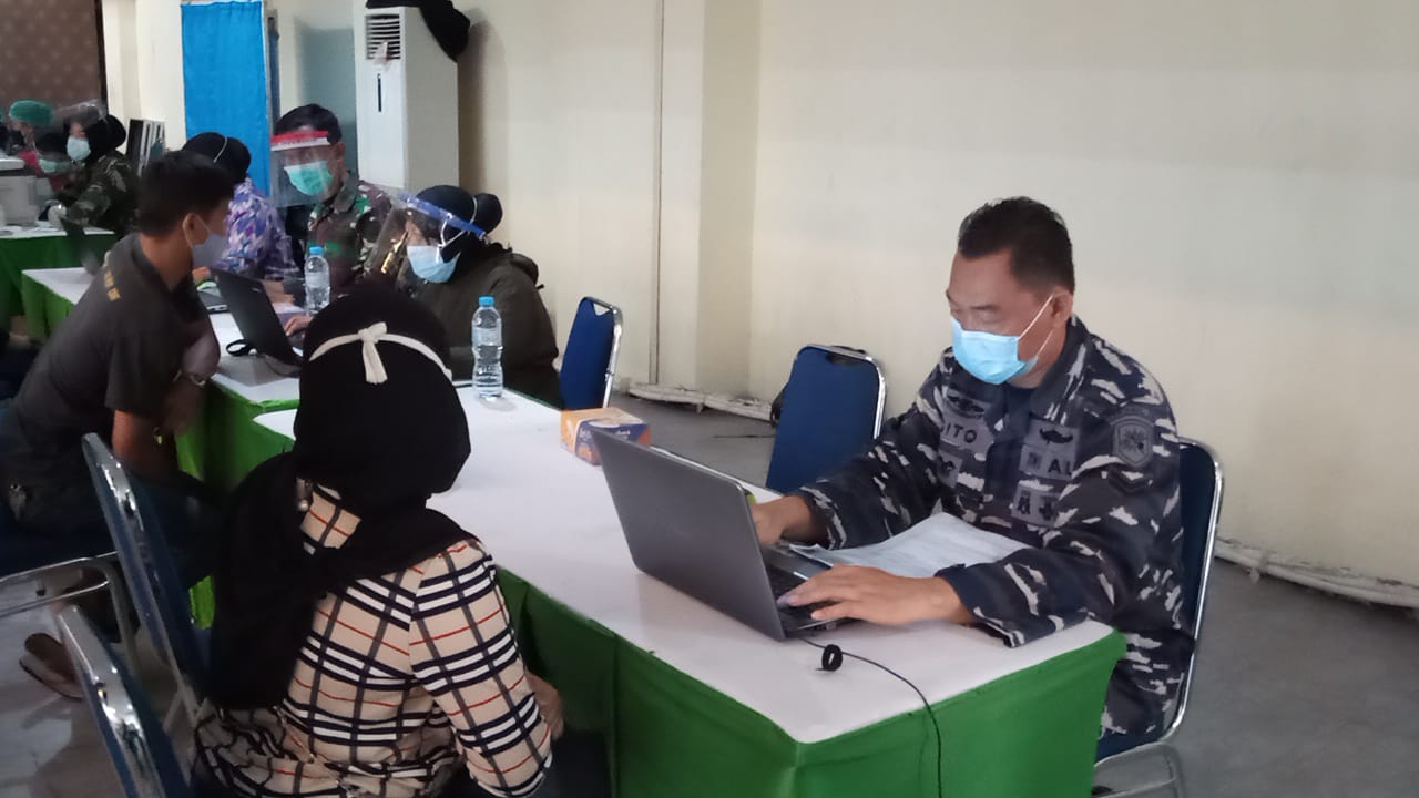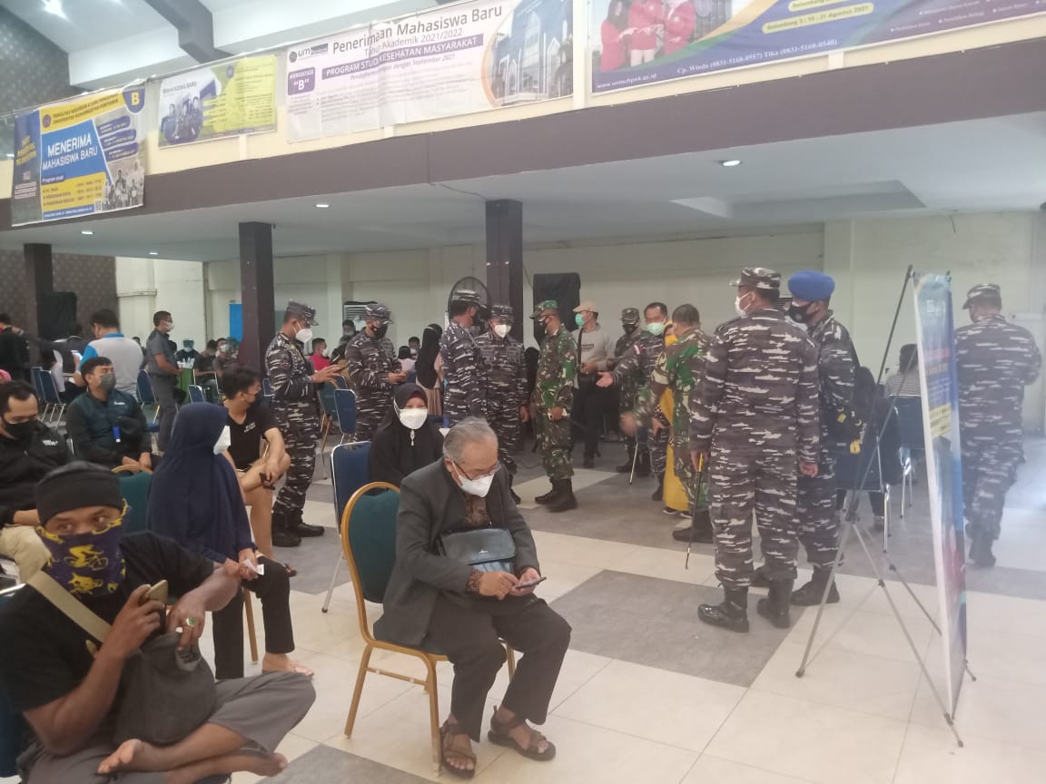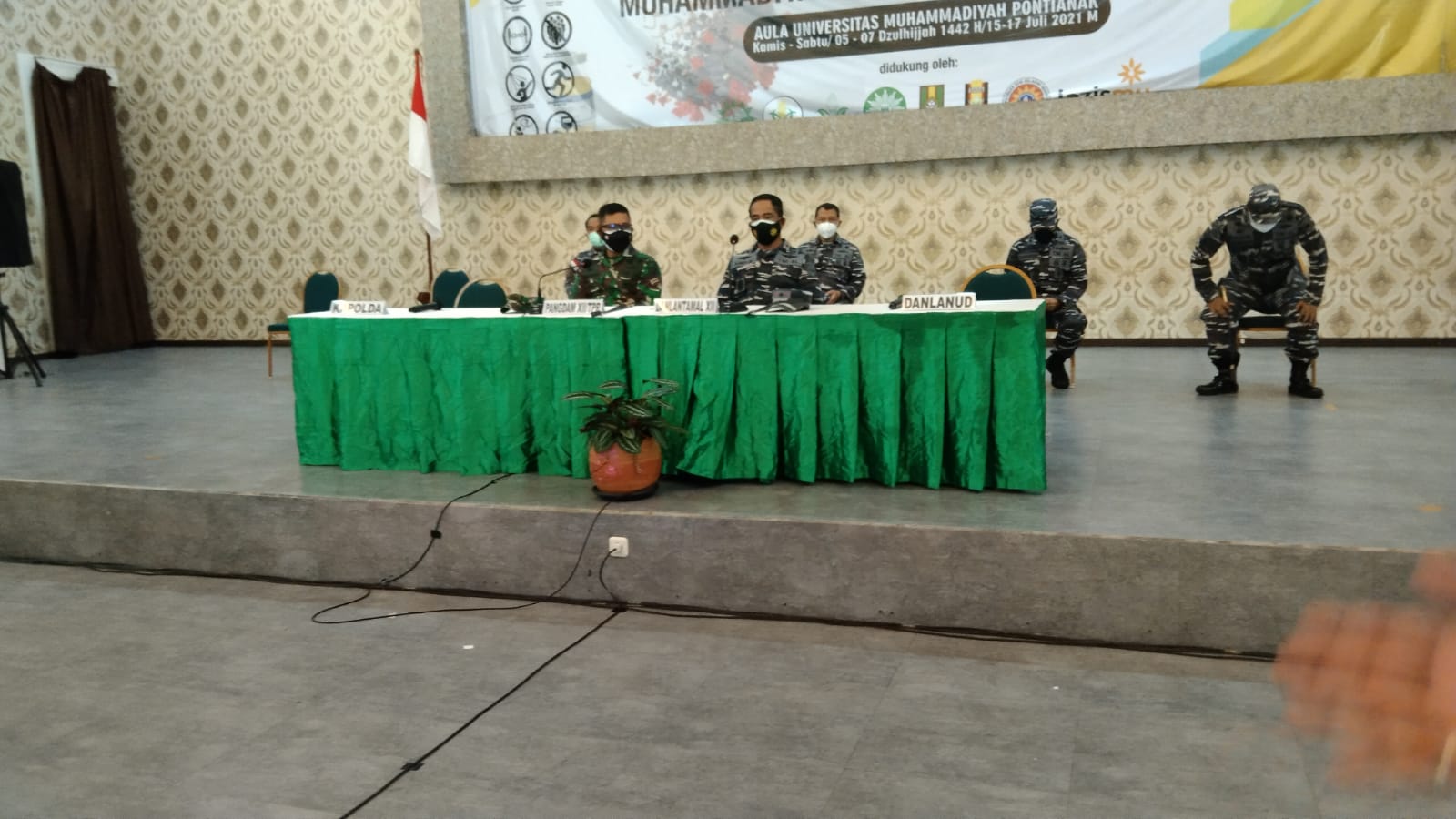 Pelaksanaan serbuan vaksinasi massal di Universitas Muhammadiyah Pontianak, yang terletak di Jl. Jend. A. Yani, Pontianak, Kalbar, mendapat peninjauan oleh Komandan Lantamal XII Pontianak Brigjen TNI (Mar) Andi Rukman.