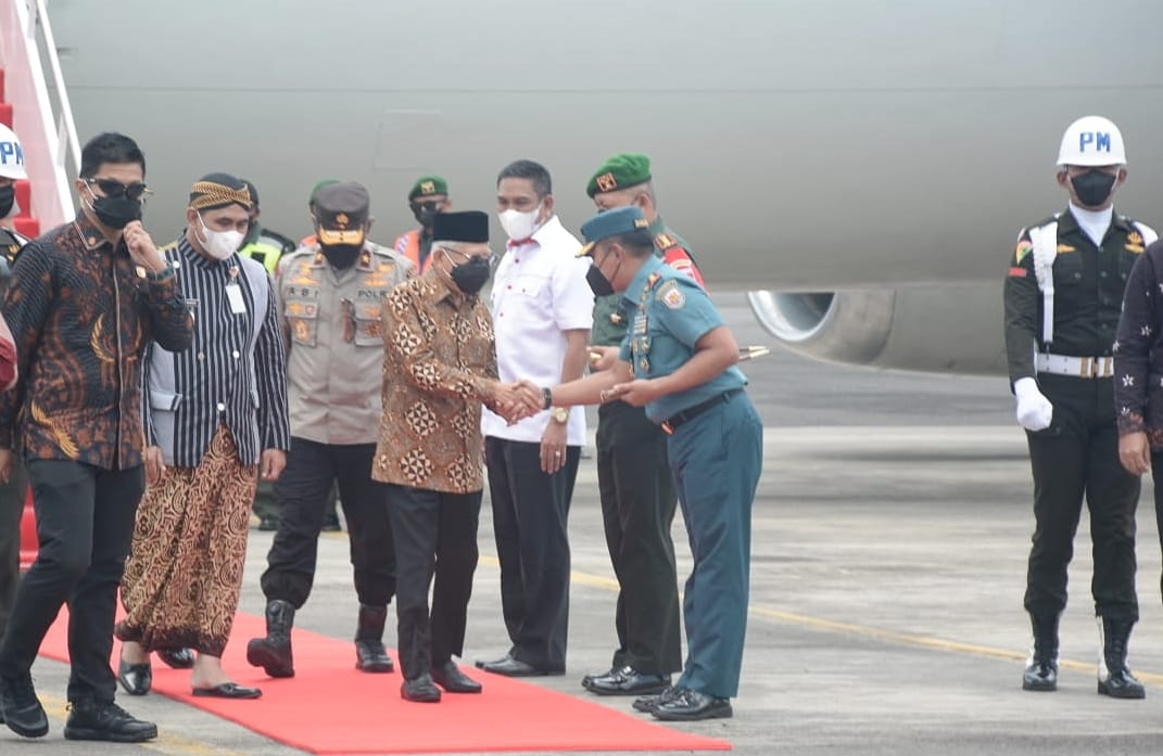 Turut hadir dalam menyambut kedatangan Wakil Presiden R.I. di Bandara Lanumad Ahmad Yani Semarang antara lain Bapak H. Taj Yasin Maimoen (Wagub Jateng), Brigjen TNI Parwito (Kasdam IV/Dip), Brigjen Pol Abiyoso Seno Aji, S.I.K., (Wakapolda Jateng), Brigjen TNI Sulaiman (Kabinda Jateng), Kolonel Cpn Sundoro (Danlanumad A. Yani Semarang), Kolonel Marinir Hariyono Masturi, M.Tr.Hanla., M.M., (Danlanal Semarang).