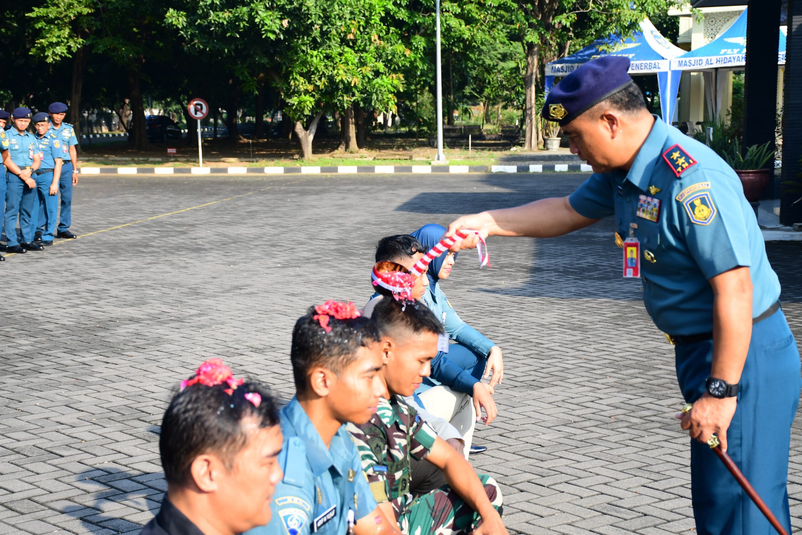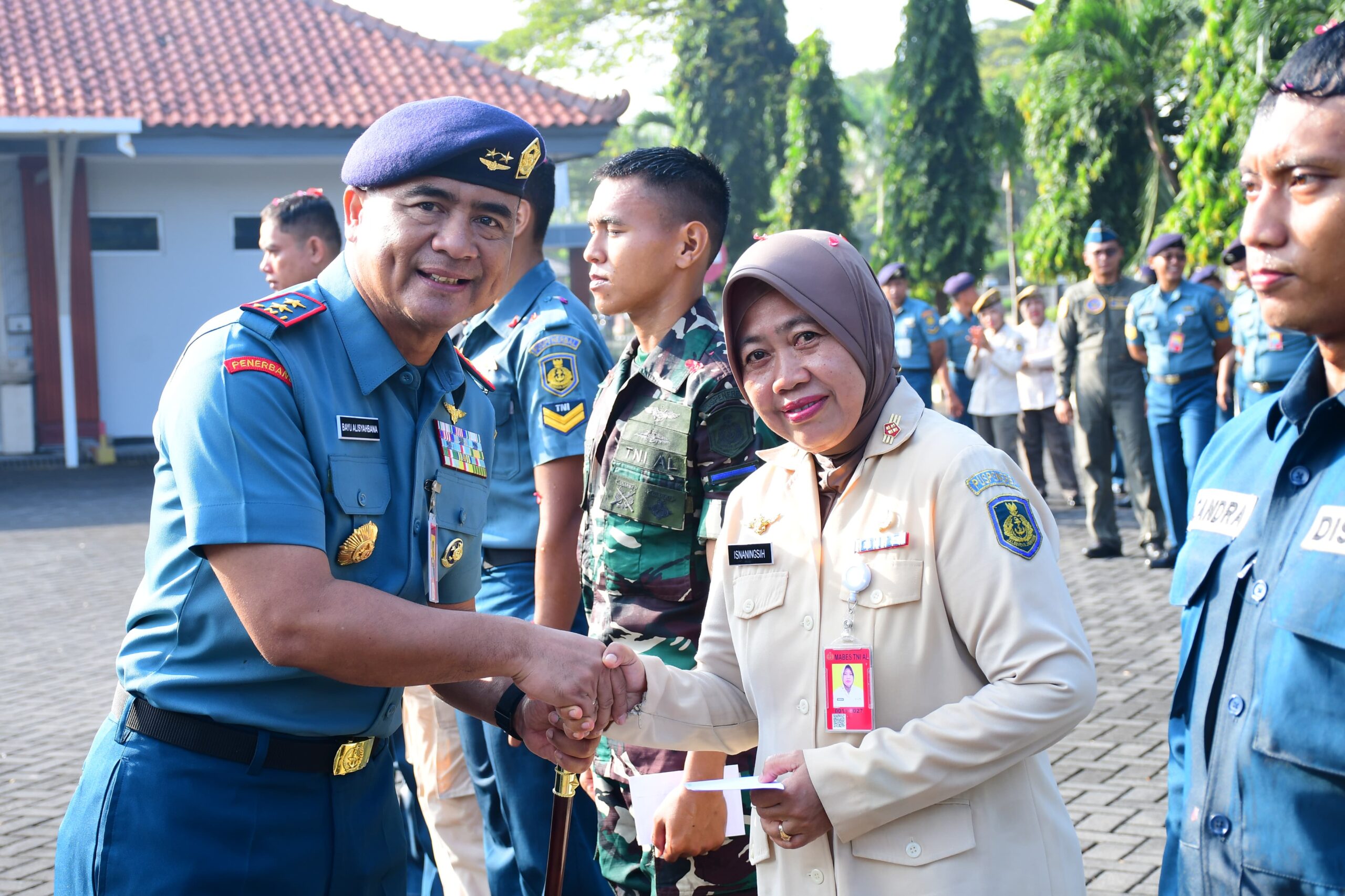 Disela-sela kegiatannya, Komandan Pusat Penerbangan Angkatan Laut (Danpuspenerbal), Laksda TNl Bayu Alisyahbana berkesempatan untuk menyapa, mengucapkan dan merayakan momen bahagia ulang tahun prajuritnya usai Apel Pagi di Lapangan Apel Mako Puspenerbal, Juanda, Sidoarjo, Senin (30/6/2025).