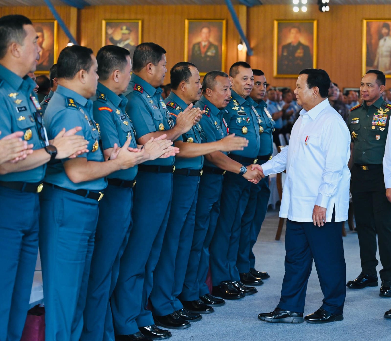 Dalam kesempatan tersebut, Presiden Prabowo Subianto didampingi Menteri Pertahanan, Sjafrie Sjamsoeddin dan Panglima TNI, Jenderal Agus Subiyanto, menyalami para prajurit saat mengikuti pengarahan Presiden kepada Komandan Satuan TNI.