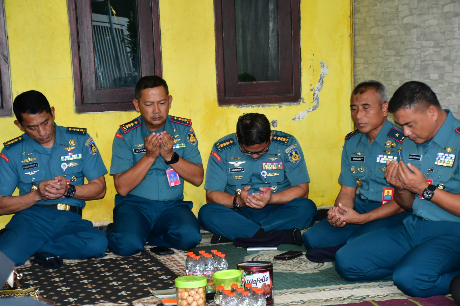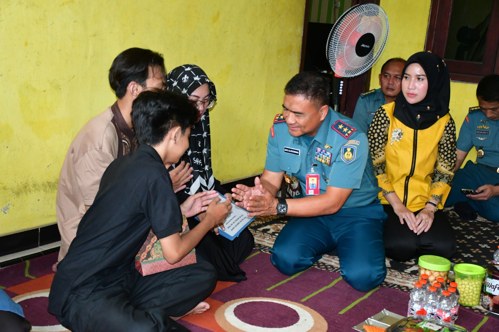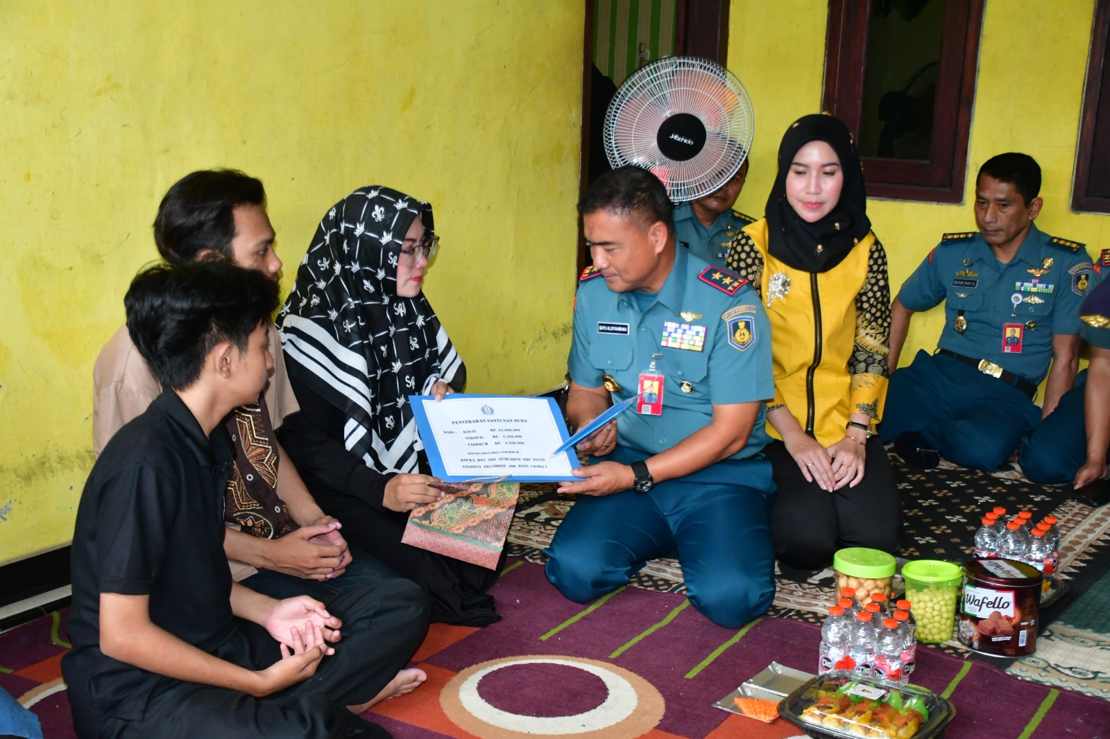 Kedatangan Komandan Puspenerbal beserta rombongan, diterima isteri dan putra Edy Nurcahyo beserta keluarga besar almarhum.