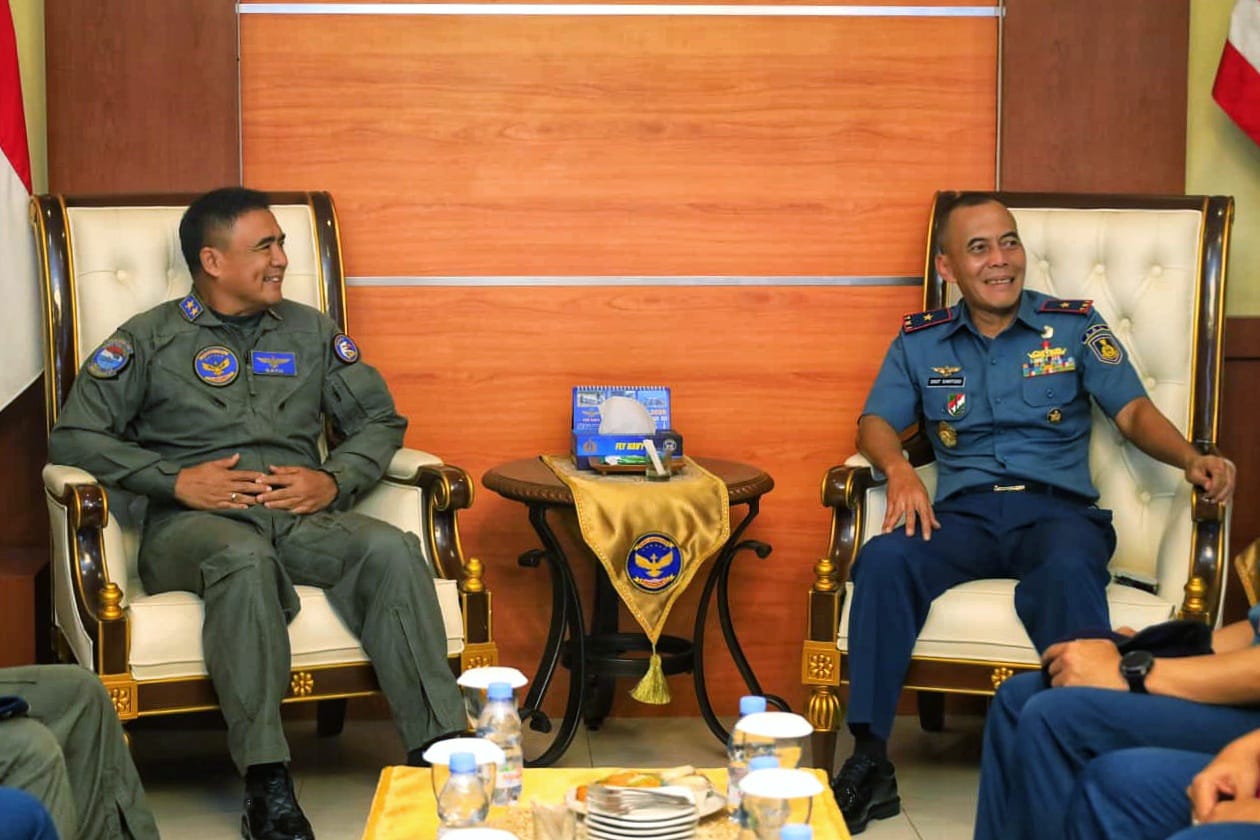 Komandan Pusat Penerbangan Angkatan Laut (Danpuspenerbal), Laksda TNl Bayu Alisyahbana menerima Courtesy Call (CC) Gubernur Akademi Angkatan Laut (AAL), Laksma TNI Sigit Santoso yang diterima di Ruang VlP Gedung R. Kasenda, Mako Puspenerbal, Juanda, Sidoarjo, Kamis (20/11/2025).