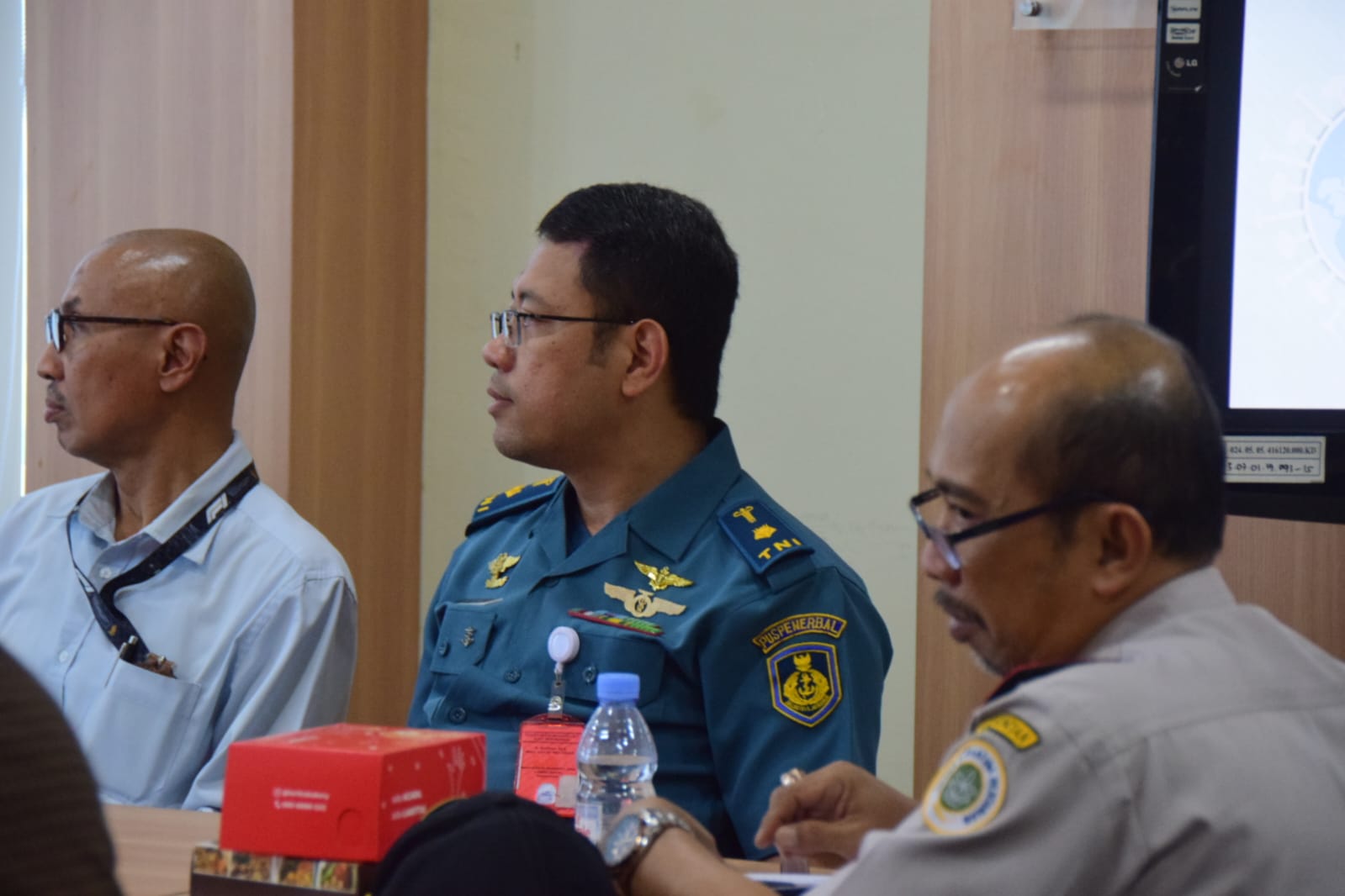 Kepala Rumah Sakit TNI Angkatan Laut (Karumkital) Dr. Soekantyo Jahja, Pangkalan Udara TNI Angkatan Laut (Lanudal) Juanda, Mayor Laut (K) dr. Krisbanu Winatasasmita, Sp. B. mengikuti rapat konsolidasi layanan kesehatan di Bandara Internasional Juanda Surabaya pada masa Endemi Covid-19, Rabu (28/6).