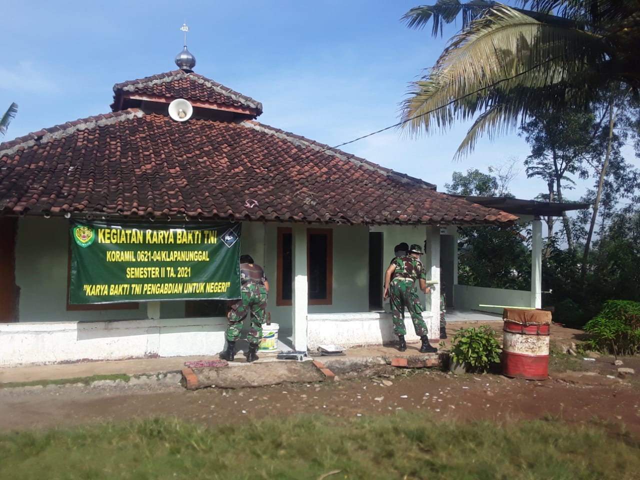 Koramil 0621-04/ Klapanunggal melaksanakan Karya Bakti TNI Semester II TA 2021 di desa Ligar Mukti Kecamatan Klapanunggal Kabupaten Bogor dengan Bertemakan ” Karya Bakti TNI Pengabdian Untuk Negeri “. Kegiatan karya bakti ini di pimpin langsung oleh Komandan Koramil Klapa nunggal Kapten Inf T.Marbun SH. kegiatan Karya Bakti TNI tersebut melaksanakan kegiatan pengecatan musholah Baitul Salam yang ada di kp Pangkalan desa Ligar Mukti dan pemberian karpet untuk Musholah Baitul Salam yang diterima oleh Ketua Ustd. Odim Selaku ketua DKM
