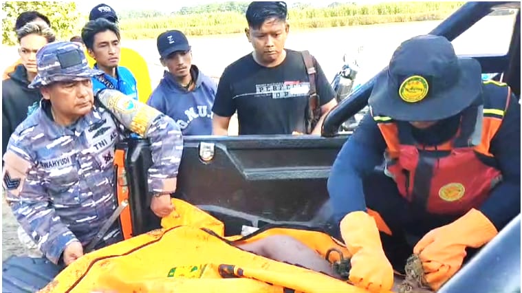 Personel Bintara Pembina Potensi Maritim (Babinpotmar) bersama tim SAR gabungan Basarnas, TNI, Polri dan Warga Desa Wlahar mengevakuasi korban tenggelam seorang pelajar atas nama Pramadipta Rizki Andika (13) tahun, yang beralamat di Desa Kedungwaringin RT. 01/06 Kecamatan Jati Lawang Kabupaten Banyumas.