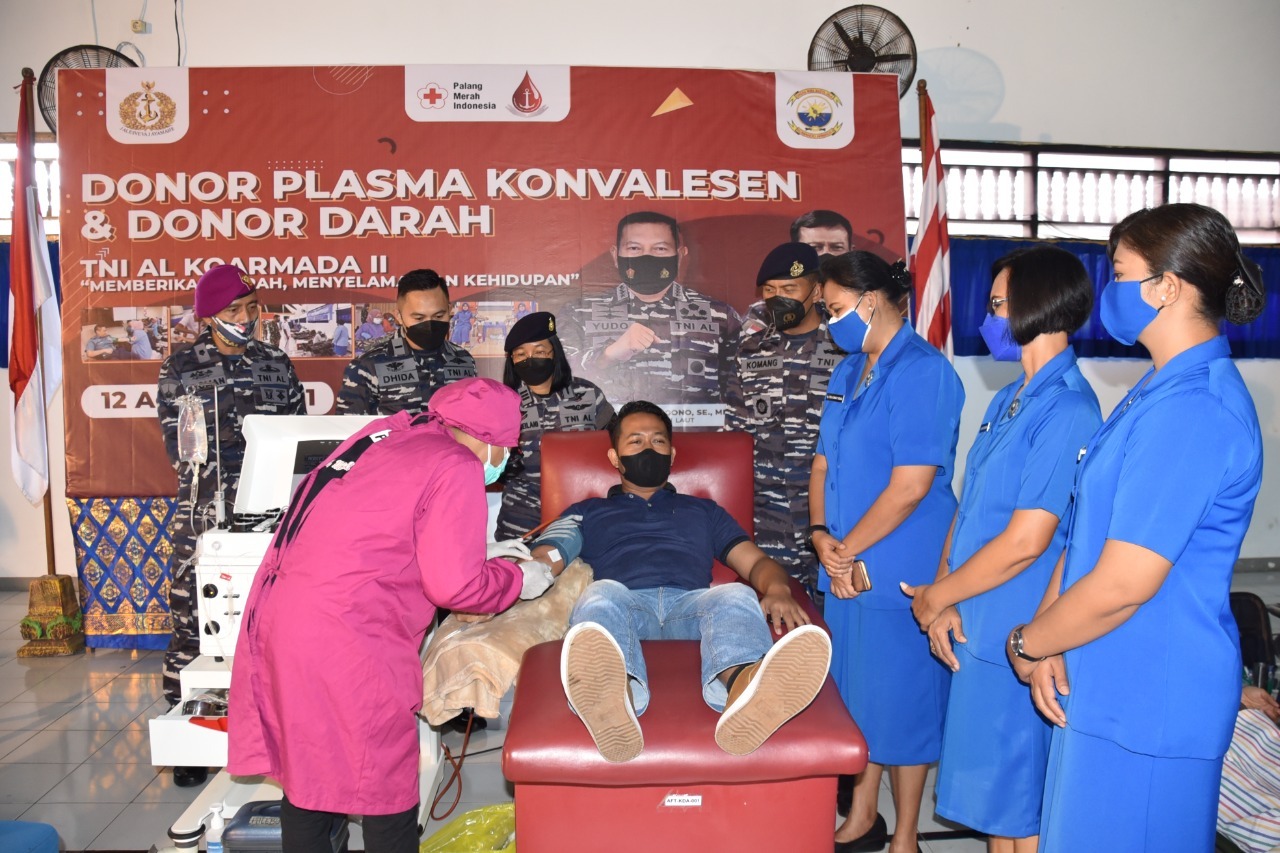 Hal ini membuat TNI AL untuk bergerak dan mendukung pemerintah untuk memberikan pelayanan kesehatan bagi pasien Covid-19 yang pada akhirnya dapat mempercepat penanganan Covid-19 di Indonesia. Seperti yang dilaksanakan oleh TNI AL dengan menggelar pelaksanaan Donor Darah dan Donor Plasma Konvaselen secara terpusat yang di gelar di Mako Armada II dihadiri oleh Ketua Umum PMI, Dr. Drs. H.M.Yusuf Kalla didampingi Kepala Staf TNI Angkatan Laut, Laksamana TNI Yudo Margono, S.E., M.M dengan melaksanakan kegiatan Video Converence dengan jajaran Koarmada II.