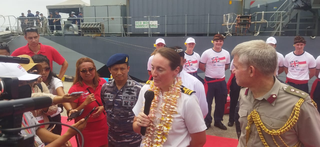 Kapal perang Angkatan Laut Kerajaan Inggris His Majesty’s Ship (HMS) Spey dengan nomor lambung P234 dengan membawa puluhan personel itu dipimpin Wakil Komandan Kapal HMS Spey Letnan Komandan Bridget Macnae langsung disambut dengan Tari Poco Poco dari Maluku, Tari Gemu Famire dari Nusa Tenggara Timur (NTT) dan joged Bali.