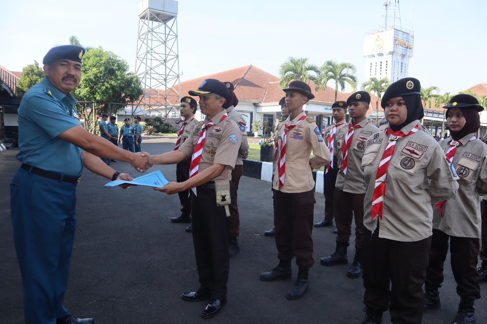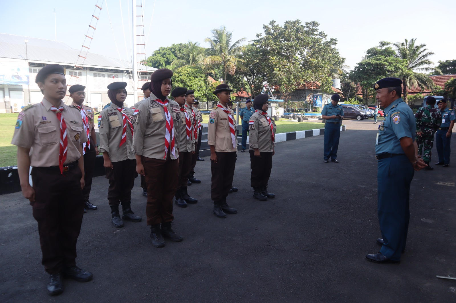 Pangkalan TNI AL Malang. Palaksa Letkol Laut (P) Mustopa Wijaksono, S.H., M. Han. didampingi Perwira staf melepas keberangkatan kontingen Pramuka Saka Bahari yang berasal dari beberapa Kabupaten dan Kota wilayah kerja Lanal Malang di Mako Lanal Malang. Kamis (07/11)