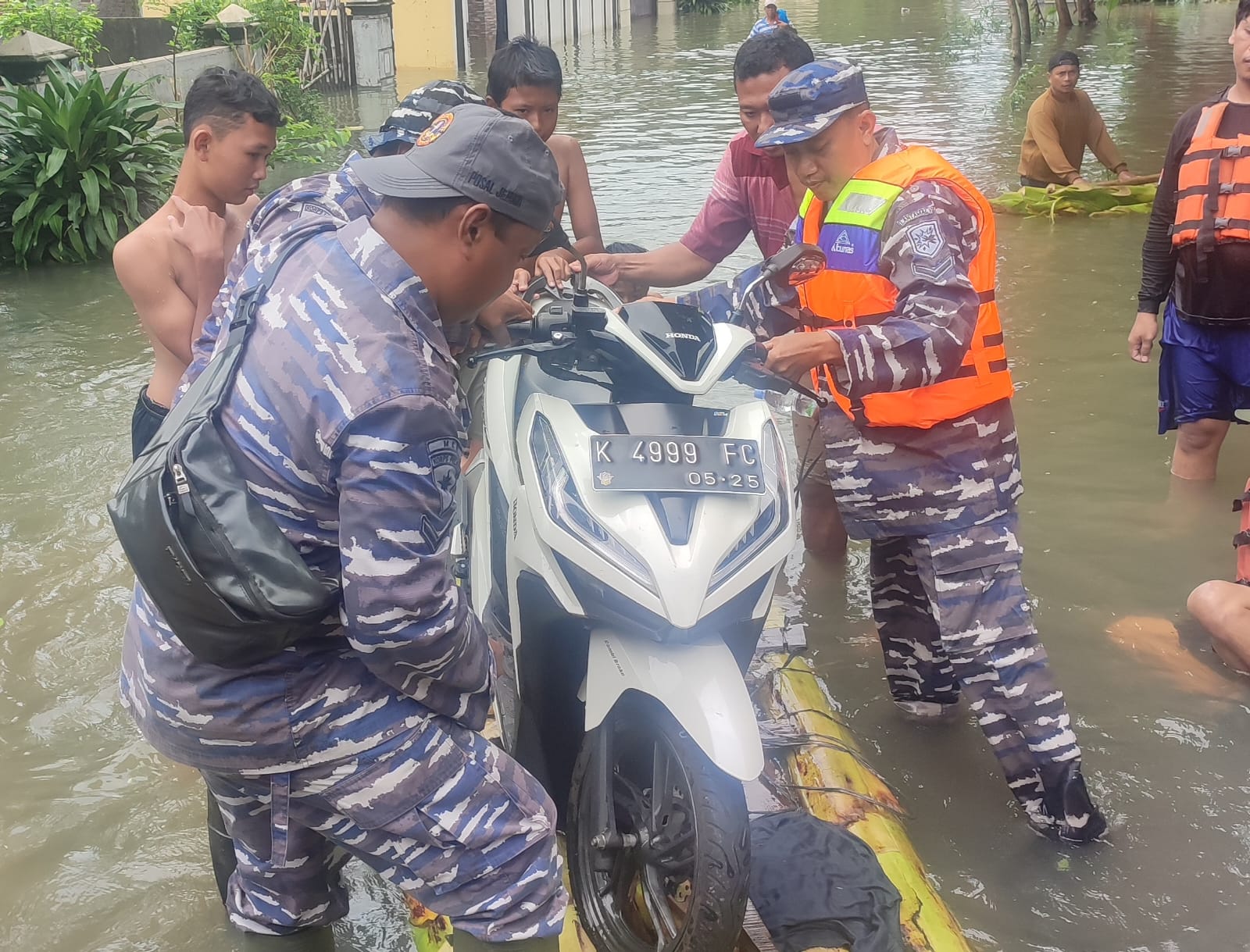 Pos Angkatan Laut (Posal) Jepara yang berada dibawah jajaran Pangkalan TNI Angkatan Laut (Lanal) Semarang sigap dalam percepatan penanganan banjir, membantu mengevakuasi warga terdampak banjir. Pasalnya ketinggian air yang telah menggenang dipemukiman warga antara 30 hingga 60 cm.