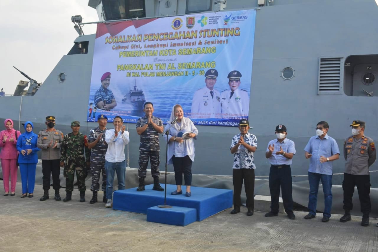 Pangkalan TNI Angkatan Laut (Lanal) Semarang dengan Komandan Kolonel Marinir Hariyono Masturi, M.Tr.Hanla., M.M. berkolaburasi dengan Pemerintah Kota (Pemkot) Semarang oleh Wakil Walikota Semarang Ir.Hj. Hevearita G.Rahayu., M.Sos mengajak Ibu Ibu Jalasenastri, Bhayangkari dan PKK menggelar acara Demo Masak yang di peragakan di hadapan masyarakat umum bertujuan untuk mensosialisasikan pencegahan stunting dengan cara mencukupi gizi, melengkapi imunisasi dan sanitasi, acara di adakan di KAL P. Menjangan II-5-39 yang sandar di Dermaga Pelni Pelabuhan Tanjung Emas Semarang. Minggu (21/08)2022).