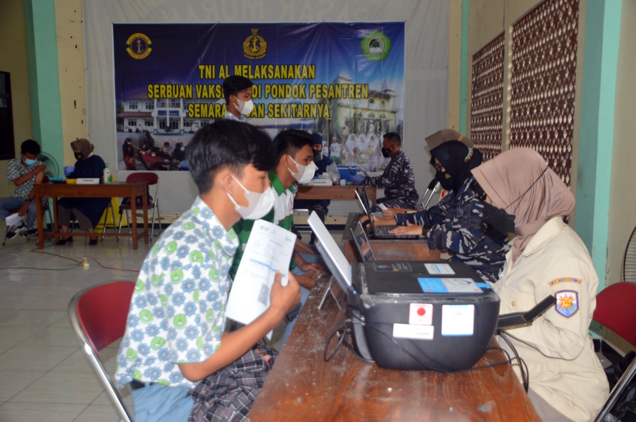 Kegiatan serbuan vaksinasi yang mengambil tempat di Pondok Pesantren Asshodiqiyah Jl. Sawah Besar Timur No.99 Kaligawe, Kecamatan Gayamsari Kota Semarang kembali menyasar pada santri/santriwati pondok pesantren. Kegiatan yang digelar di Pondok Pesantren Asshodiqiyah merupakan bagian dari program Serbuan Vaksinasi Covid-19 yang dilaksanakan oleh TNI AL.
