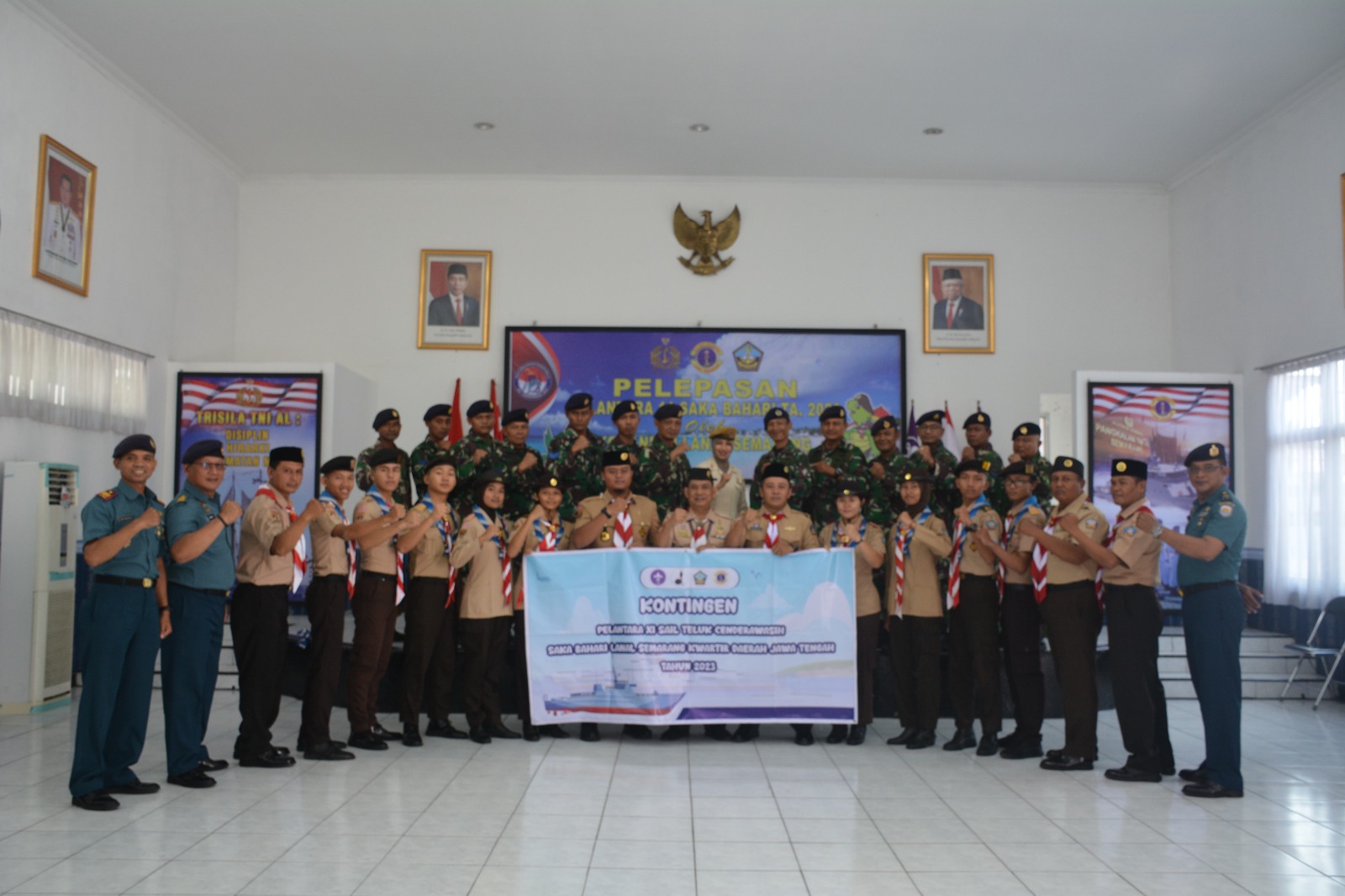 Kontingen Pelantara 11 Tahun 2023 Saka Bahari binaan Lanal Semarang yang diberangkatkan sebanyak 8 siswa, terdiri dari 4 putra dan 4 putri dari PIP Semarang, Unimar Amni, SMKN 10 Semarang serta SMA Laboratorium Upgris.