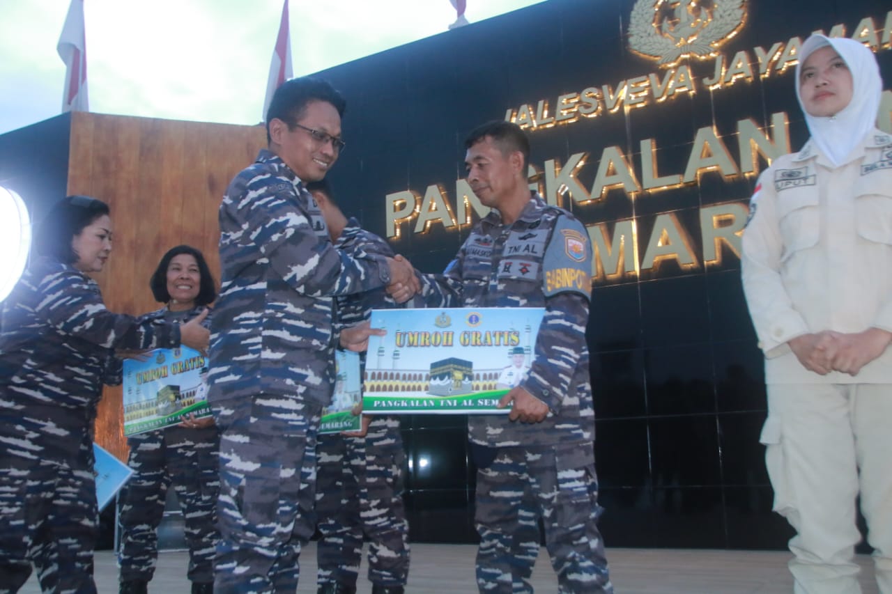Komandan Pangkalan TNI Angkatan Laut (Danlanal) Semarang Kolonel Marinir Hariyono Masturi,M.Tr.Hanla, M.M, didampingi Ketua Cabang 4 Korcab V DJA II Ny. Heny Hariyono Masturi membagikan Hadiah Doorprize dari Bapak Panglima TNI Laksamana TNI Yudo Margono dan sebagai wujud perhatian dan apresiasi atas loyalitas, dedikasi dan semangat para prajurit Jalasena Samudra TNI AL di Mako Lanal Semarang, Jl. RE Martadinata No.12 Tawangsari, Semarang Barat ,Kota Semarang. Jum’at (14/04/2023).