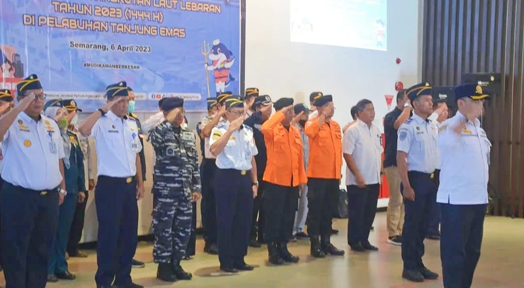 Pangkalan TNI Angkatan Laut (Lanal) Semarang turut berpartisipasi dalam Apel Siaga Pembukaan Posko Angkutan Laut menjelang Lebaran Idhul Fitri 1444 H / 2023 M yang digelar oleh Kantor Kesyahbandaran dan Otoritas Pelabuhan Kelas I Tanjung Emas Semarang, (06/04/2023)