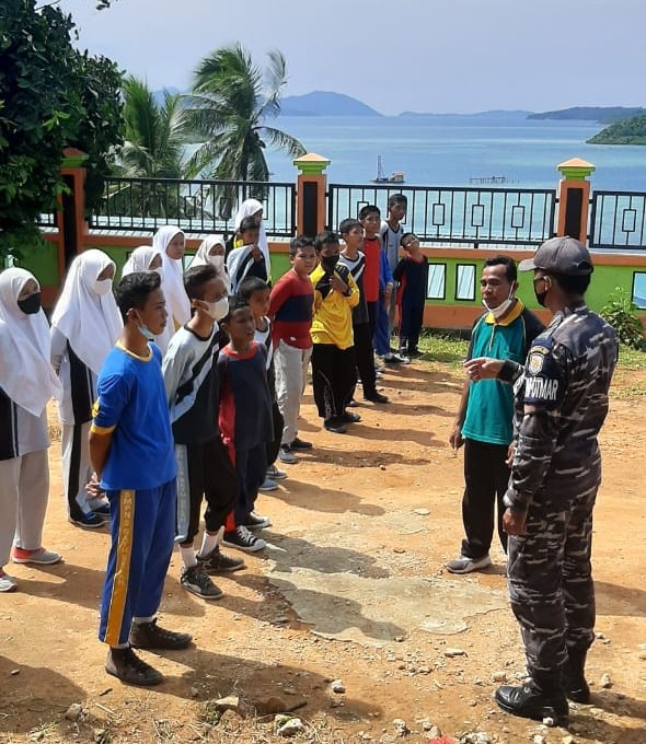 Babinpotmar Posal Memperuk Sertu POM Dede Suganda melaksanakan Sosialisasi Vaksinasi Covid-19 kepada Siswa-siswi SMPN 2 Kampung Bahari Nusantara ( KBN ) Desa Batu Belah, dan kepada Masyarakat Desa KBN Batu Belah.