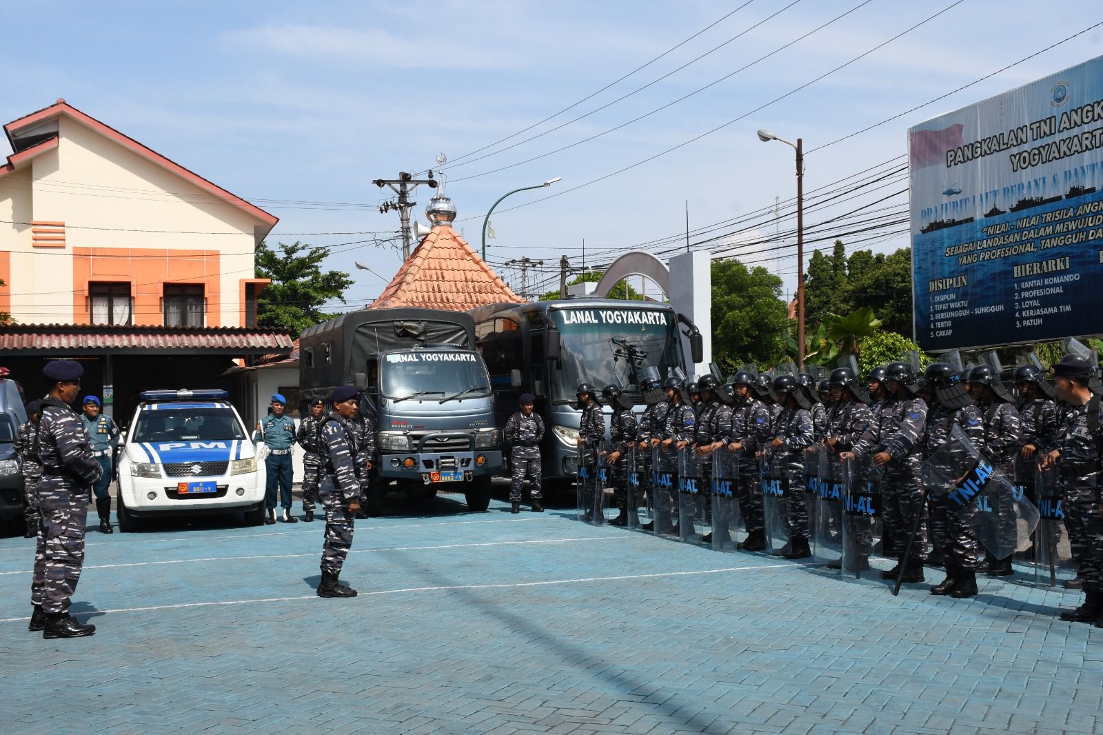 Pangkalan TNI AL Yogyakarta menggelar apel gelar pasukan dalam rangka pengamanan Pemilihan Umum (Pemilu) Tahun di lapangan Apel Mako Lanal Yogyaarta Jl. Melati Wetan No.62, Baciro, Kec. Gondokusuman, Kota Yogyakarta, Daerah Istimewa Yogyakarta.