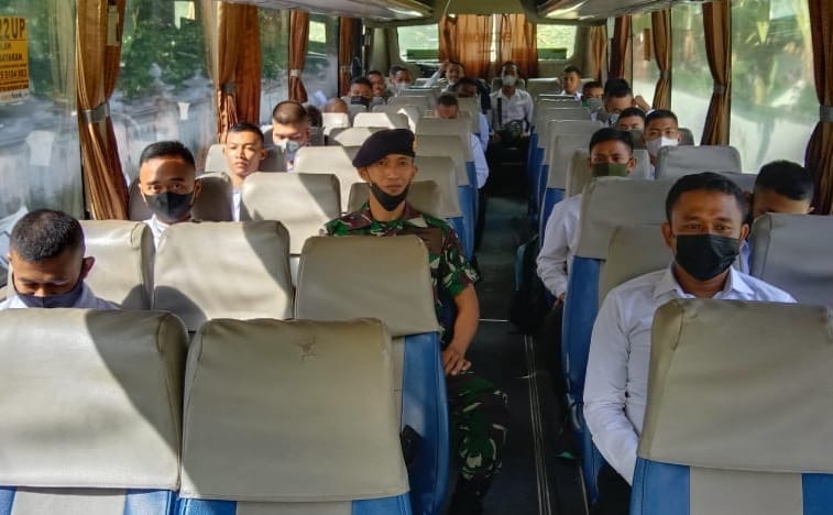 Pemberangkatan peserta Calon Komcad Matra Laut TA. 2022 dengan menggunakan Bus pariwisata dan 2 orang pendamping dari Lanal Yogyakarta menuju Kodikmar Surabaya untuk mengikuti seleksi lanjutan.