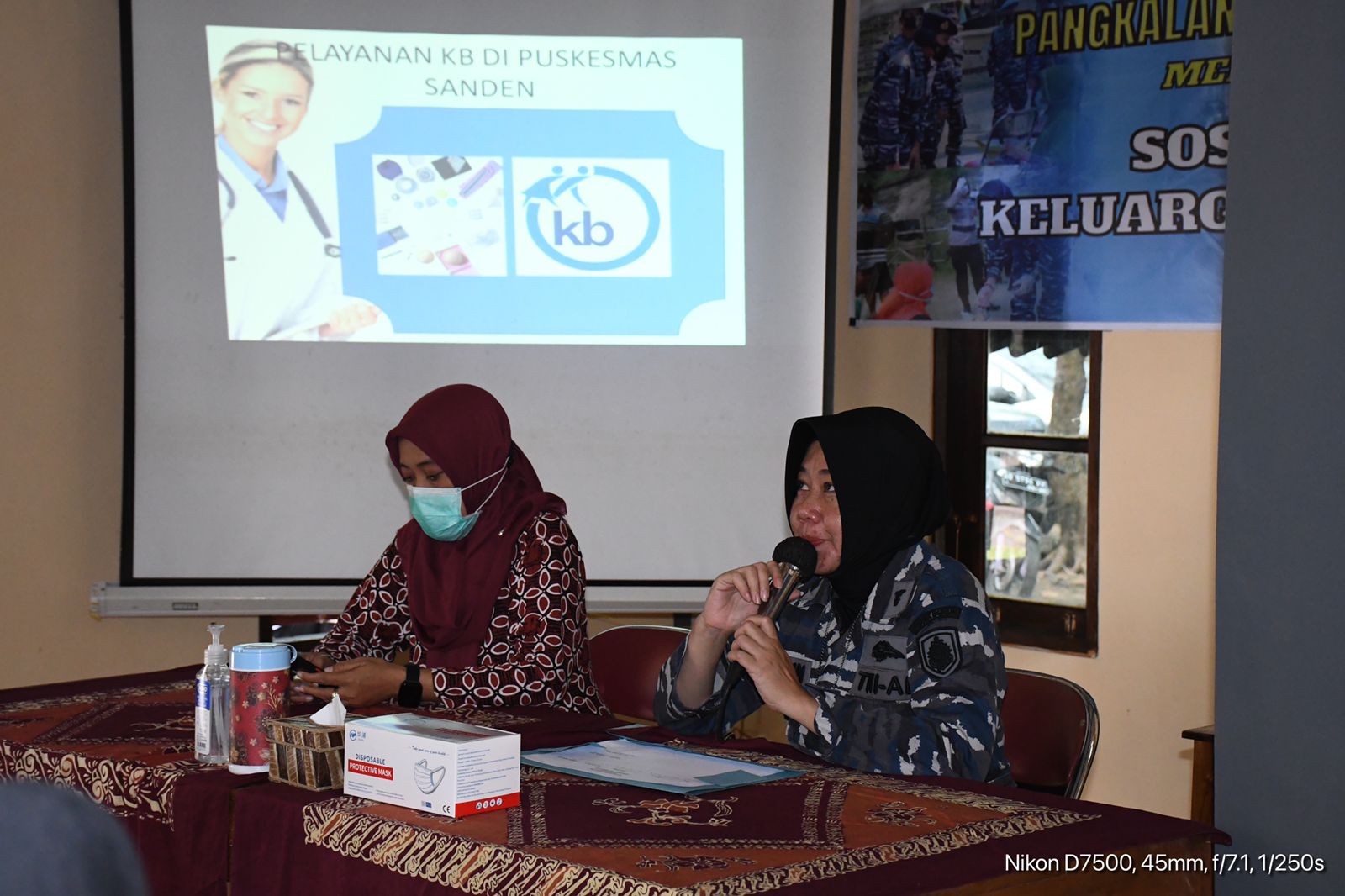 Dalam rangka mewujudkan masyarakat sejahtera khususnya bagi ibu dan anak, mengendalikan pertumbuhan penduduk dengan jalan mengatur kelahiran, serta upaya mencegah kejadian stunting (gizi buruk) pada bayi, balita dan anak anak, bertempat di Rumah Pintar (Rumpin) Kampung Bahari Nusantara (KBN) Pantai Samas, Srigading, Sanden, Bantul, Pangkalan TNI Angkatan Laut (Lanal) Yogyakarta bekerja sama dengan Puskesmas Sanden laksanakan sosialisasi Keluarga Berencana (KB) kepada warga masyarakat sekitar desa binaan TNI AL “Kampung Bahari Nusantara Pantai Samas”. Kamis (4/11/22)