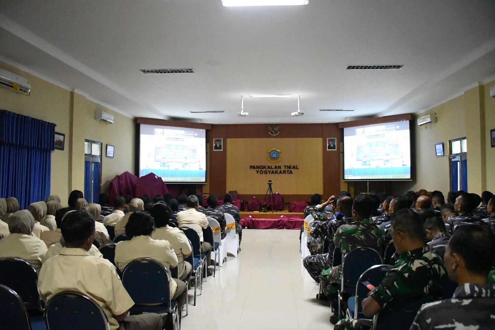 Komandan Lanal Yogyakarta Kolonel Laut (KH/W) Dr. Devi Erlita, M.M.,M.Tr.Hanla beserta Prajurit Lanal Yogyakarta ikuti Safari Pers secara Video Conference (Vicon) terpusat di Lanal Semarang di pimpin langsung oleh Aspers Kasal Laksamana Muda TNI P. Rahmad Wahyudi,S.E,M.Tr.Han. Bertempat di Aula Mako Lanal Yogyakarta, Jl.Melati Wetan,No.62 ,Baciro,Gondokusuman, Yogyakarta.24 Juli 2024.