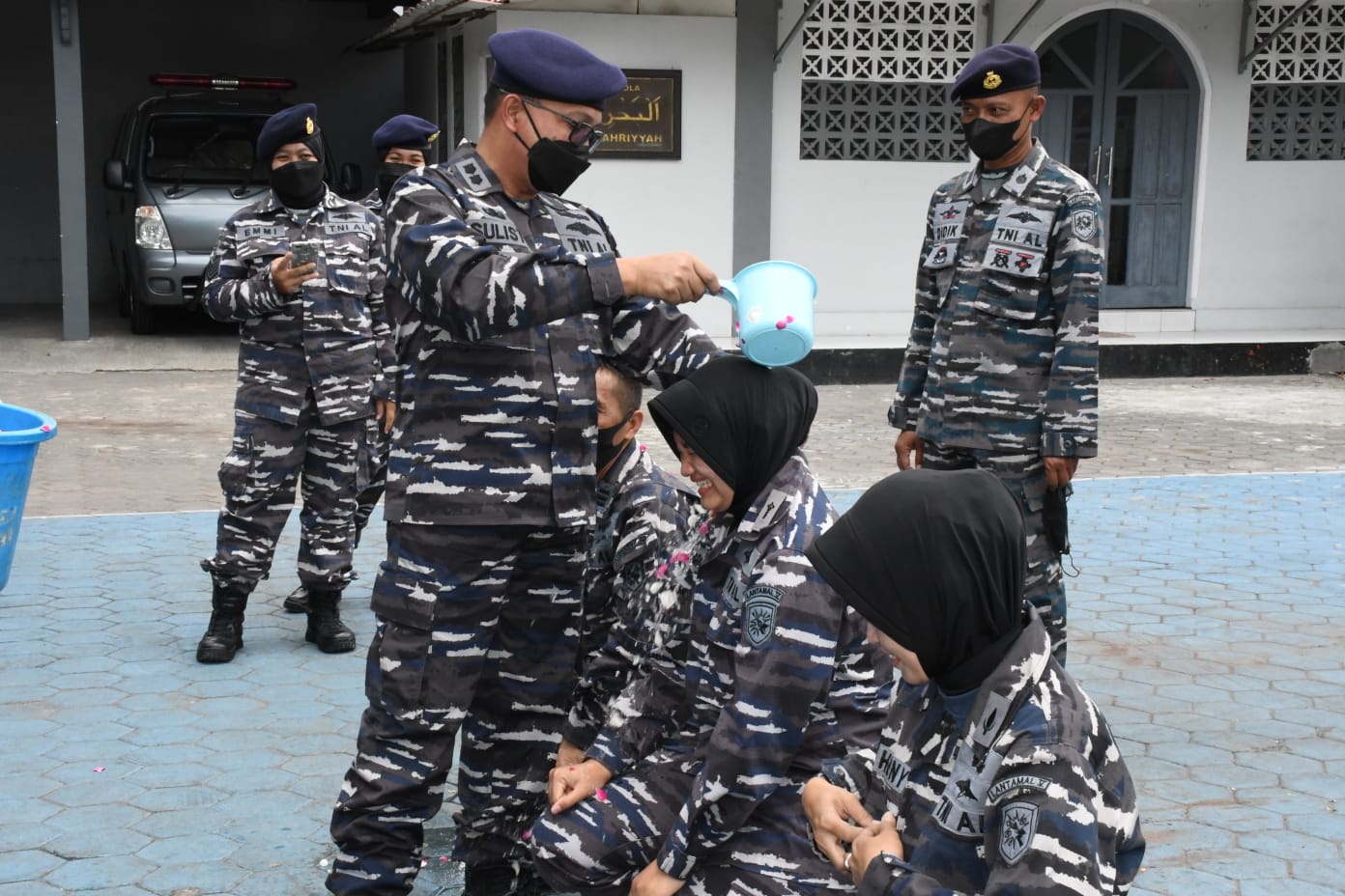 Acara dilanjutkan gelaran tradisi siraman air kembang kepada personel yang naik pangkat, diawali oleh Palaksa Yogyakarta memulai prosesi penyiraman air kembang dan berturut-turut diikuti perwira staf dilanjutkan pemberian ucapan dari segenap prajurit dan PNS Lanal Yogyakarta sebagai ungkapan turut bersyukur dan rasa bahagia kepada personel yang mendapat kenaikan pangkat.