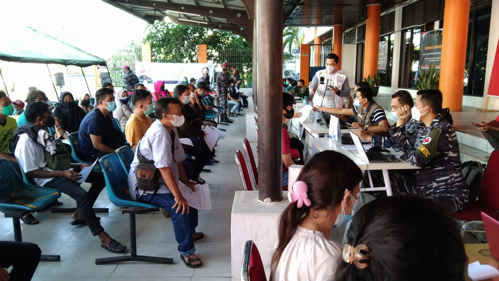 Pada Lanjutan Serbuan Vaksin hari ini kepada masyarakat Maritim yang diselenggarakan oleh Lantamal XII, Jum’at (23/07/21) di pelabuhan Dwikora Pelindo II kota Pontianak masih diikuti dengan antusias oleh masyarakat, terlihat dari banyaknya masyarakat yang mendaftar untuk divaksin dalam kegiatan tersebut.
