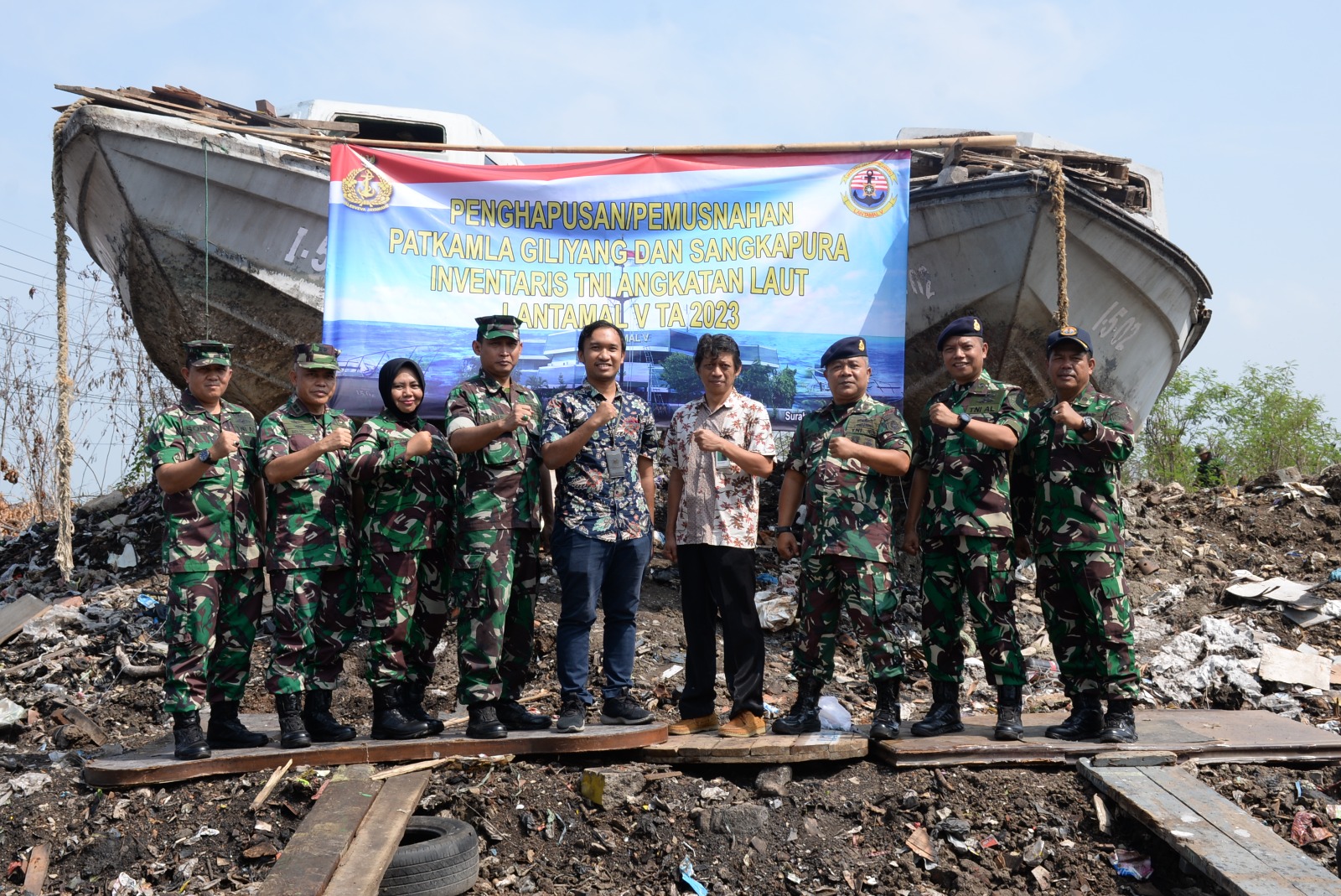 Pangkalan Utama TNI Angkatan Laut (Lantamal) V dalam hal ini Staf Logistik (Slog) Lantamal V melaksanakan Penghapusan dan Pemusnahan Barang Milik Negara (BMN) Inventaris TNI AL berupa 2 (dua) Unit Kapal Patroli Keamanan Laut (Patkamla) bertempat di Tempat Pembuangan Akhir (TPA) TNI AL Jl. Wonosari, Surabaya. Jumat (15/12/2023)