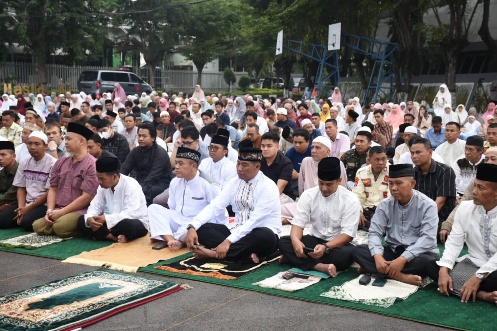 Komandan Pangkalan Utama TNI AL (Danlantamal) V Laksma TNI Dr. Arya Delano, S.E., M.Pd., M.Han., bersama Ketua Korcab V DJA II, Ny. Febri Arya Delano, melaksanakan Sholat Idul Fitri 1446 H/2025 M bertempat di Lapangan Mako Lantamal V, Perak, Surabaya. Senin (31/03/2025)