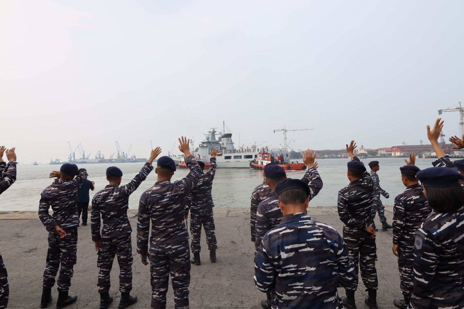 Pangkalan Utama TNI Angkatan Laut (Lantamal) V melepas keberangkatan 2 Kapal Perang Diraja Brunei Darussalam (KDB) yaitu KDB Darulaman 08 dan KDB Syafaat 19 bertempat di Dermaga Mirah Selatan, Tanjung Perak, Surabaya. Sabtu (23/11/2024)