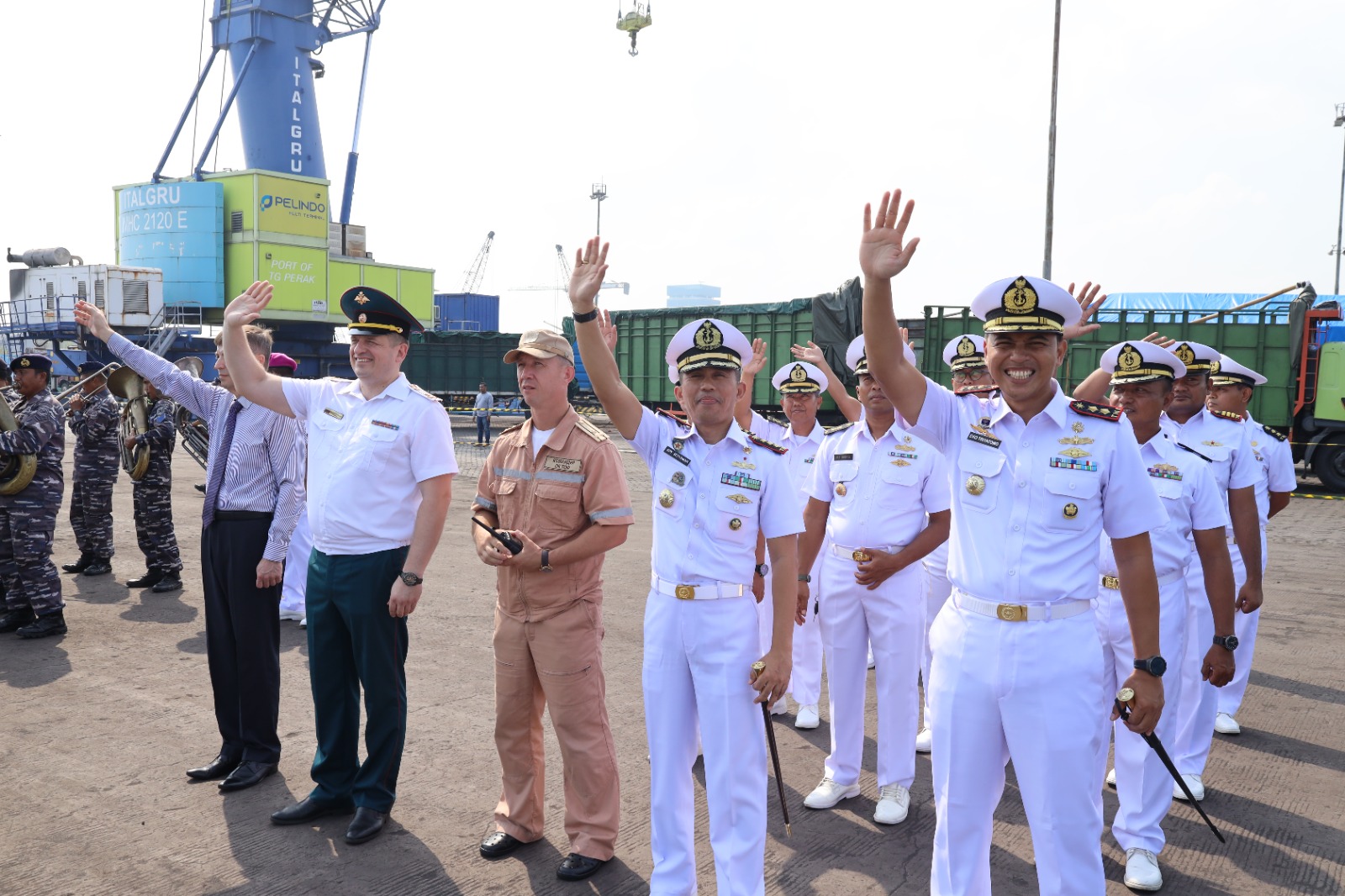 Turut Hadir dalam pelepasan Kapal Perang AL Rusia diantaranya Dansatrol Lantamal V, Kadisminpers Lantamal V, Kadispen Lantamal V, Kadissyahal Lantamal V, Dandenma Lantamal V, dan Kadisfaslan Lantamal V.