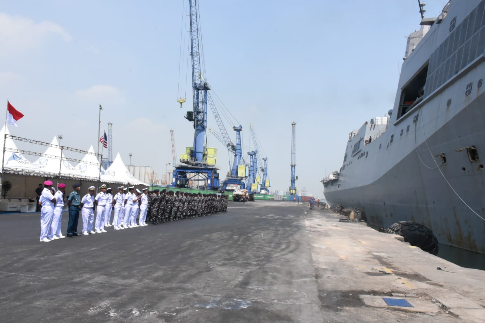 Pangkalan Utama Angkatan Laut (Lantamal) V melepas keberangkatan Kapal Perang Amerika Serikat USS Green Bay (LPD-20) serta menyambut Kedatangan Kapal Perang India INS Shivalik (F47) di Dermaga Jamrud Utara, Tanjung Perak Surabaya. Kamis (29/08/2024).