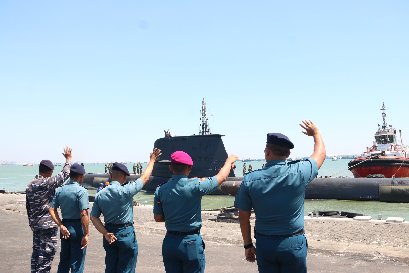 Pangkalan Utama TNI AL (Lantamal) V melepas keberangkatan Kapal Selam Australia HMAS Waller (SSG-75) bertempat di Dermaga Jamrud Utara, Tanjung Perak, Surabaya. Kamis (12/09/2024)
