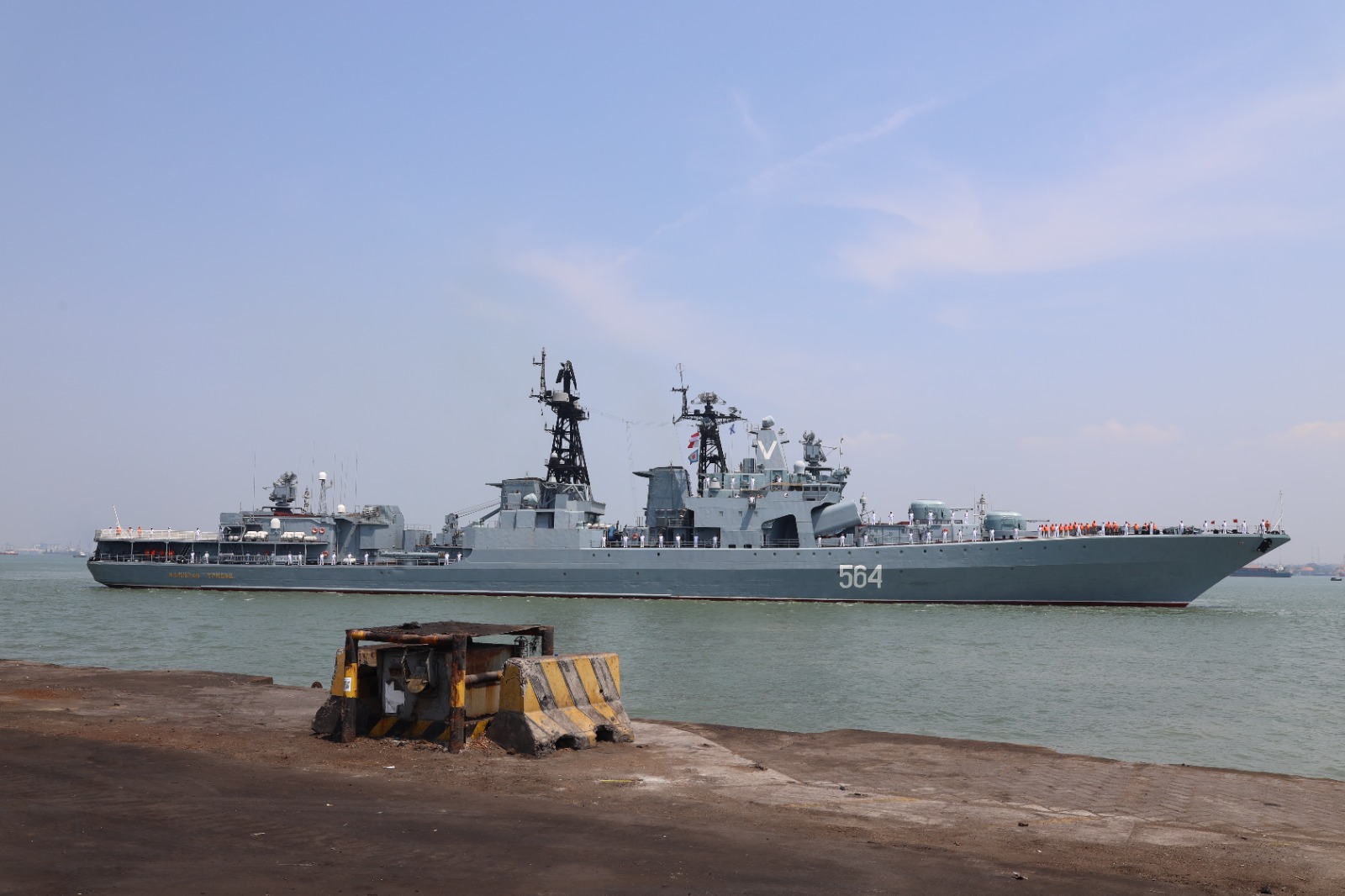 Pangkalan Utama Angkatan Laut V (Lantamal V) melaksanakan penyambutan kedatangan tiga kapal perang Rusia, dua diantaranya merupakan kapal perusak anti Kapal Selam milik Angkatan Laut Rusia yaitu Admiral Panteleev-548 dan Admiral Tributs-546. Ketiganya sandar di Dermaga Jamrud Utara, Tanjung Perak, Surabaya. (22/10/23).