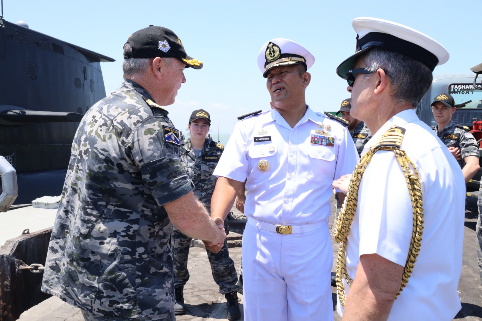 Pangkalan Utama TNI AL (Lantamal) V menyambut kedatangan Kapal Selam AL Australia HMAS Waller (SSG-75) yang sandar di Dermaga Jamrud Utara, Tanjung Perak, Surabaya. Selasa (09/09/2024)