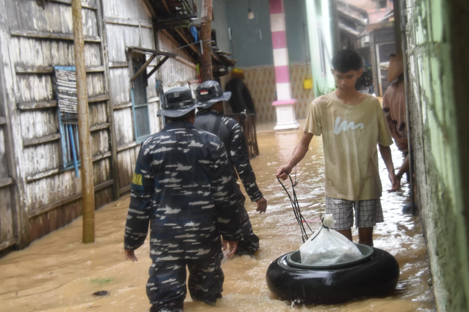 Menyikapi kondisi tersebut, Pos TNI Angkatan Laut (Posal) Juwana turun langsung ke lokasi untuk memantau situasi dan membantu pendataan warga terdampak. Kegiatan ini merupakan tindak lanjut perintah Danlanal Semarang, Kolonel Marinir Sabprowanto, S.H., M.Sc., dan dipimpin langsung oleh Danposal Juwana, Kapten Laut (E) Jion.