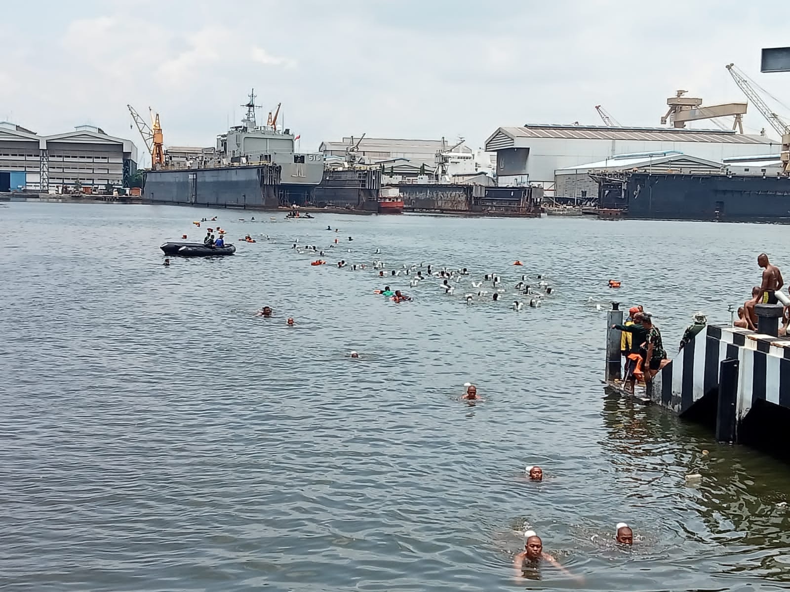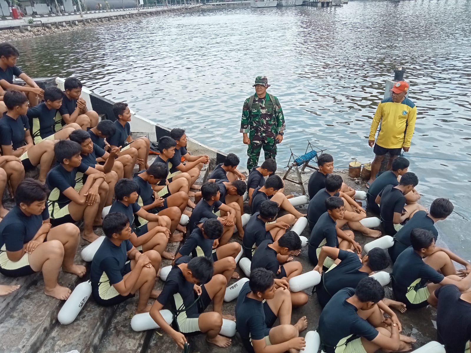 Dalam rangka membekali kemampuan mempertahankan diri dalam waktu lama di air, siswa Pendidikan Pertama Bintara (Dikmaba) TNI AL Angkatan XLII/2 TA. 2022 melaksanakan materi pelajaran dan praktek Renang Laut yang dilaksanakan di Dermaga Kolam Basin Koarmada II, Rabu (22/02/2023).