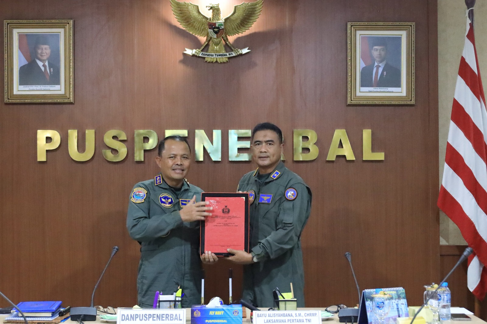 H-2 jelang Serah Terima Jabatan (Sertijab) Komandan Pusat Penerbangan TNl Angkatan Laut yang diagendakan Jumat (9/5) mendatang di Mabesal Cilangkap, Jakarta, dilaksanakan Memorandum Sertijab Danpuspenerbal dari Laksda TNI Sisyani Jaffar kepada Laksma TNl Bayu Alisyahbana di Rupat R. Kasenda Mako Puspenerbal, Rabu Juanda, (7/5//2025).