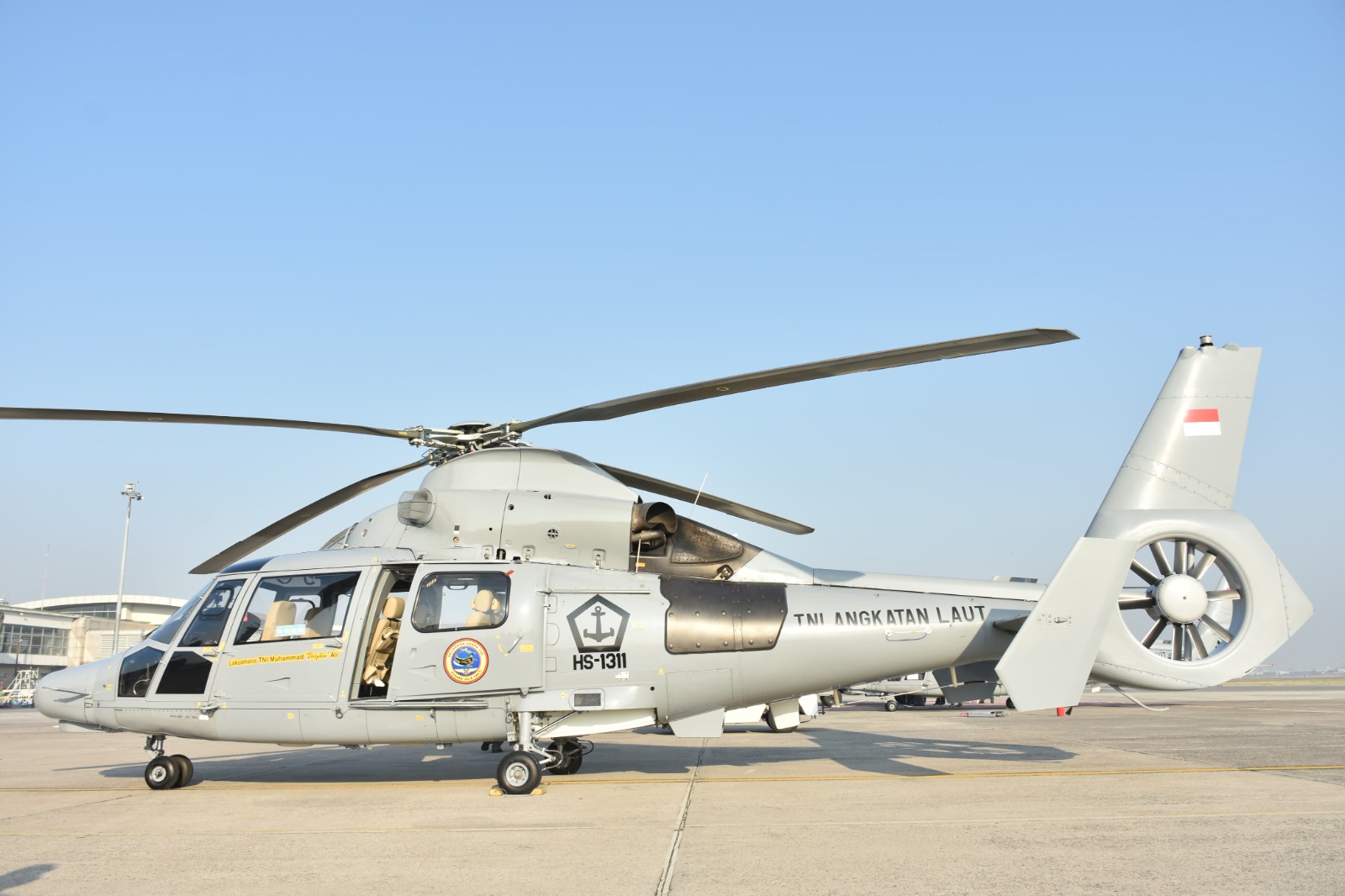 Helikopter AS565 MBe atau lazim disebut “Panther” mengantarkan Kepala Staf TNI Angkatan Laut (Kasal) untuk menerima Brevet Kehormatan Penerbangan TNI Angkatan Laut dari Puspenerbal, setelah orang nomor satu dijajaran TNl AL ini menjadi Copilot AS565 MBe HS1311 yang digelar di Apron Bandara Juanda, Senin (12/9/2023).