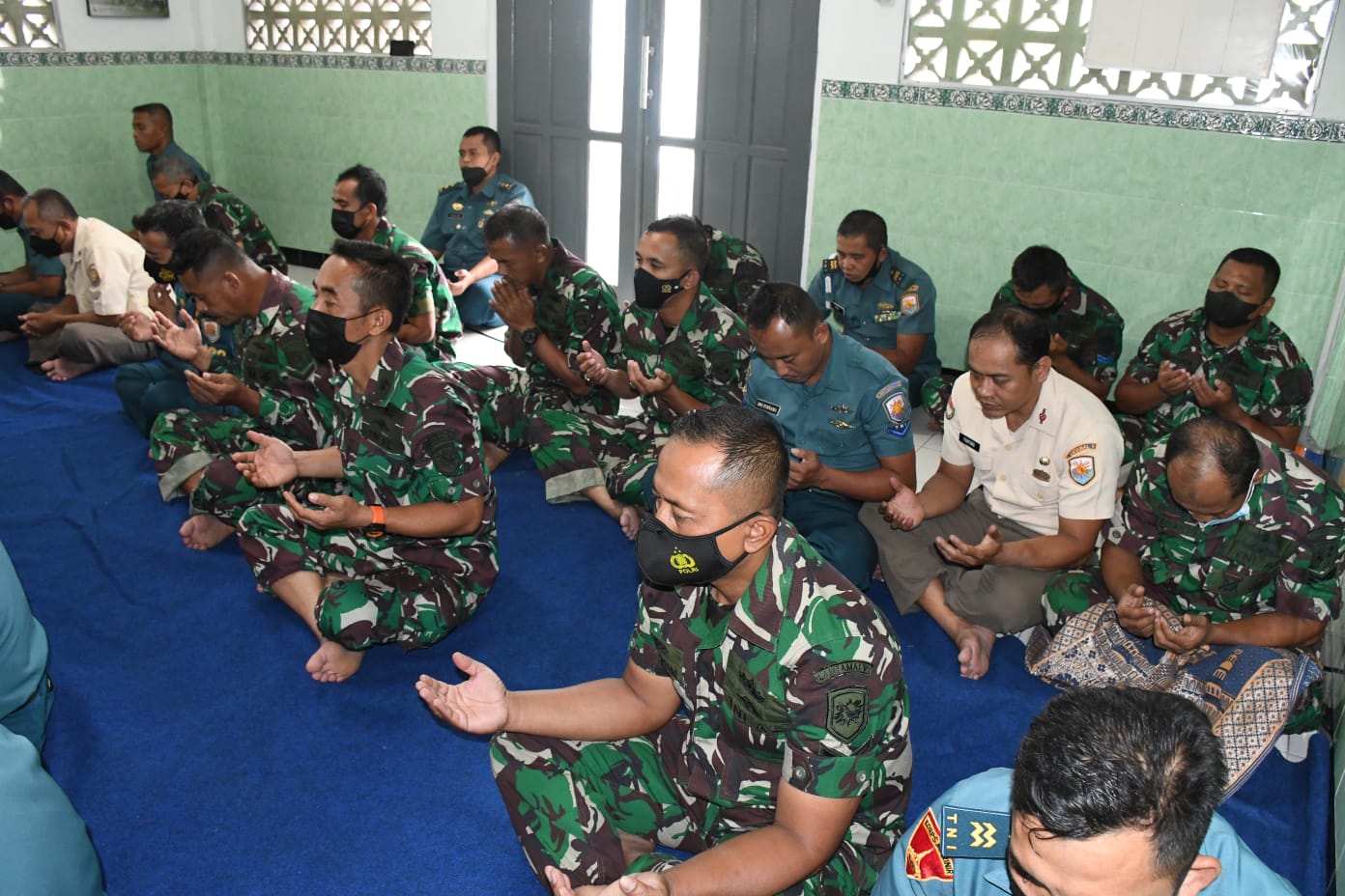 Prajurit Pangkalan TNI Angkatan Laut (Lanal) Yogyakarta menggelar doa bersama untuk 53 prajurit Hiu Kencana TNI Angkatan Laut yang gugur dalam tugas untuk mengenang 1 tahun tenggelamnya KRI Nanggala-402 doa bersama dilaksanakan di Musholla Al Bahriyah Mako Lanal Yogyakarta Jln. Melati Wetan No.62 Baciro Gondokusuman Kota Yogyakarta, Kamis (21/04/22).