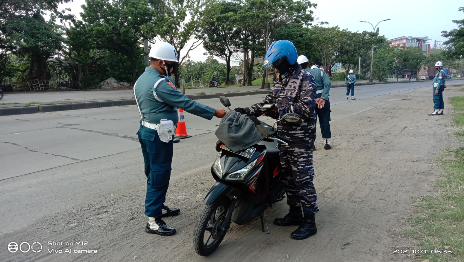 Dalam Rangka menyambut HUT Ke-76 TNI Tahun 2021 Detasemen Polisi Militer (Denpom) Lanal Semarang dibawah Komandan Mayor Laut (PM) Arianto melaksanakan Pekan Disiplin Operasi Gaktib di Jl. R.E. Martadinata Semarang, Jumat (1/10/2021)