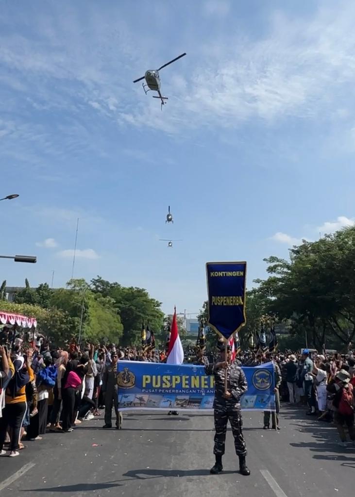 Usai laksanakan penghormatan, ketiga helikopter melintas dihadapan seluruh masyarakat sebelum kembali ke Pangkalan TNI Angkatan Laut Juanda.