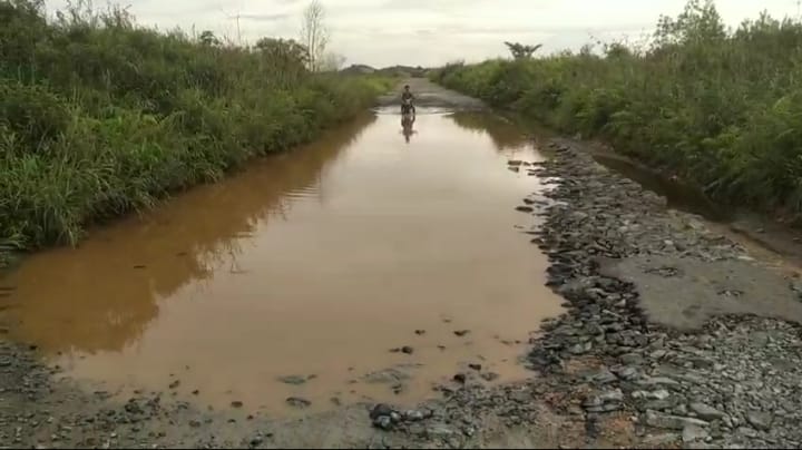 Jalan rusak dan berlubang serta penuh di genangi air tersebut, sudah berlangsung sekian tahun. Namun belum ada perhatian dari dinas dan instansi terkait untuk melakukan perbaikan.