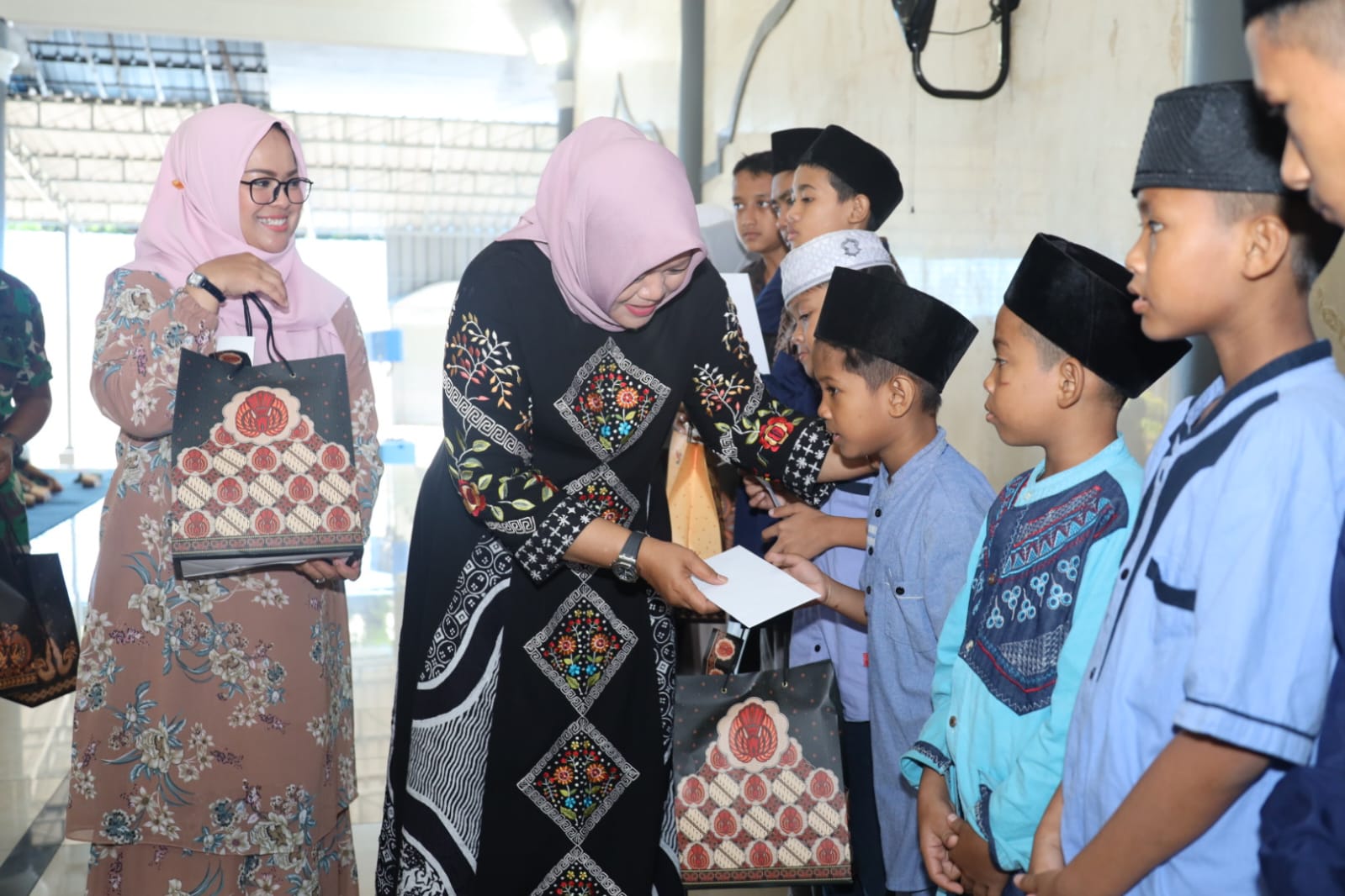 Pada kesempatan yang baik ini, di akhir acara dilaksanakan penyerahan santunan kepada 25 anak yatim oleh Ketua Gabungan Jalasenastri Kodiklatal, Ny. Ayu Nur Alamsyah didampingi Wakil Ketua Gabungan Jalasenastri Kodiklatal Ny. Dian Eko Wahjono.