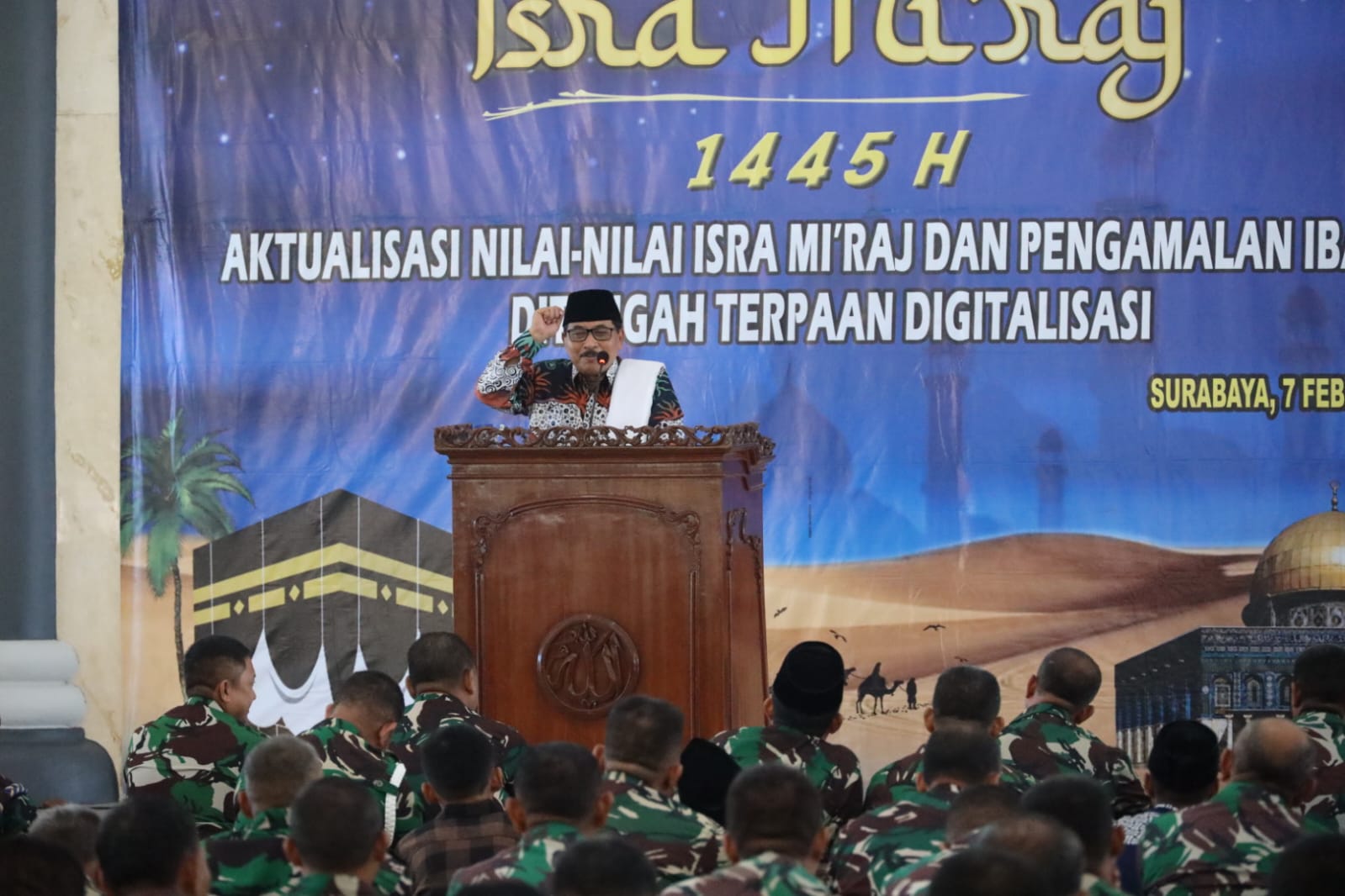 Hal tersebut disampaikan oleh Wakil Komandan (Wadan) Kodiklatal Laksda TNI Eko Wahjono yang mewakili Komandan Kodiklatal (Dankodiklatal) Letjen TNI Nur Alamsyah pada Peringatan Isra Miraj Nabi Muhammad Sallallahu Alaihi Wasallam dengan tema, “Aktualisasi Nilai-Nilai Isra Miraj dan Pengamalan Ibadah di Tengah Terpaan Digitalisasi”, bertempat di Masjid Ibadurrahman Kodiklatal, Bumimoro Surabaya. Rabu (07/02/2024).