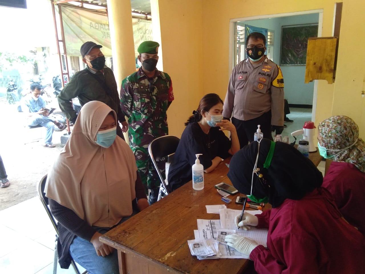 Polsek Cileungsi bersama Koramil dan Satpol PP Kecamatan Cileungsi melaksanakan kegiatan monitoring vaksinasi covid 19 bagi pendidik, tenaga kesehatan dan lansia dosis 2 bertempat di Aula Kantor Desa Jatisari Desa Cileungsi, pada Senin (05/07).