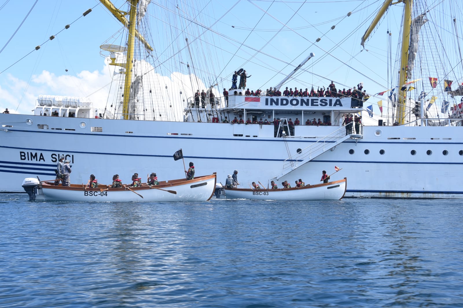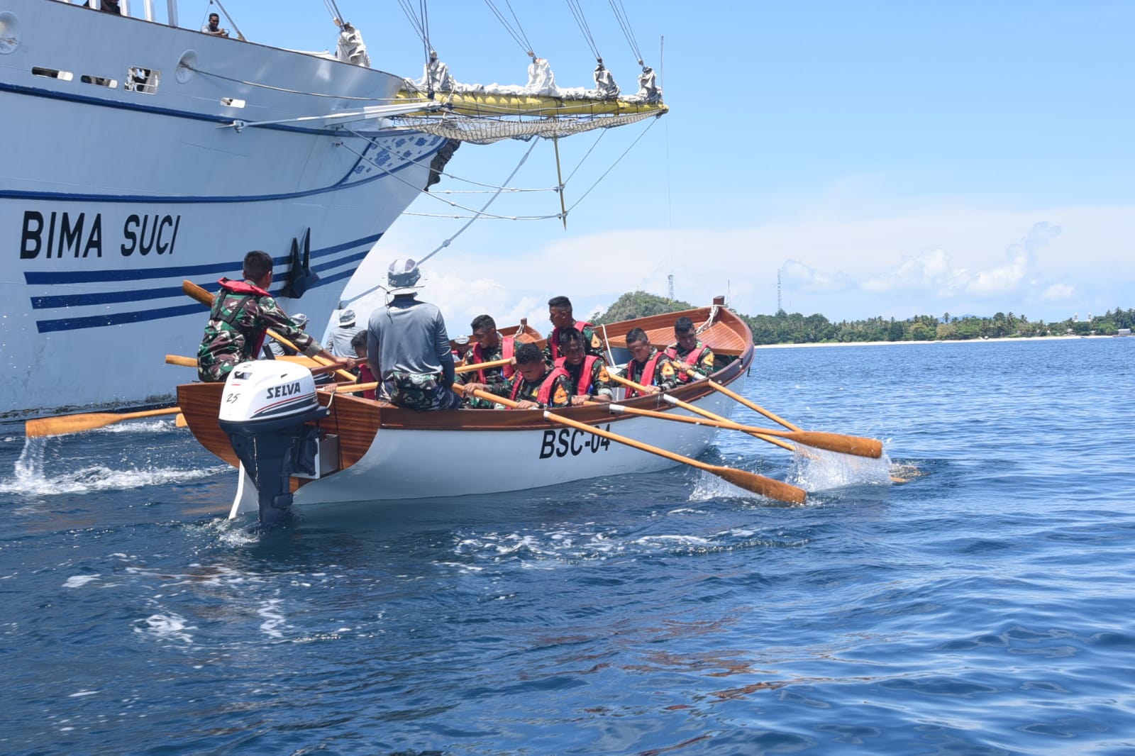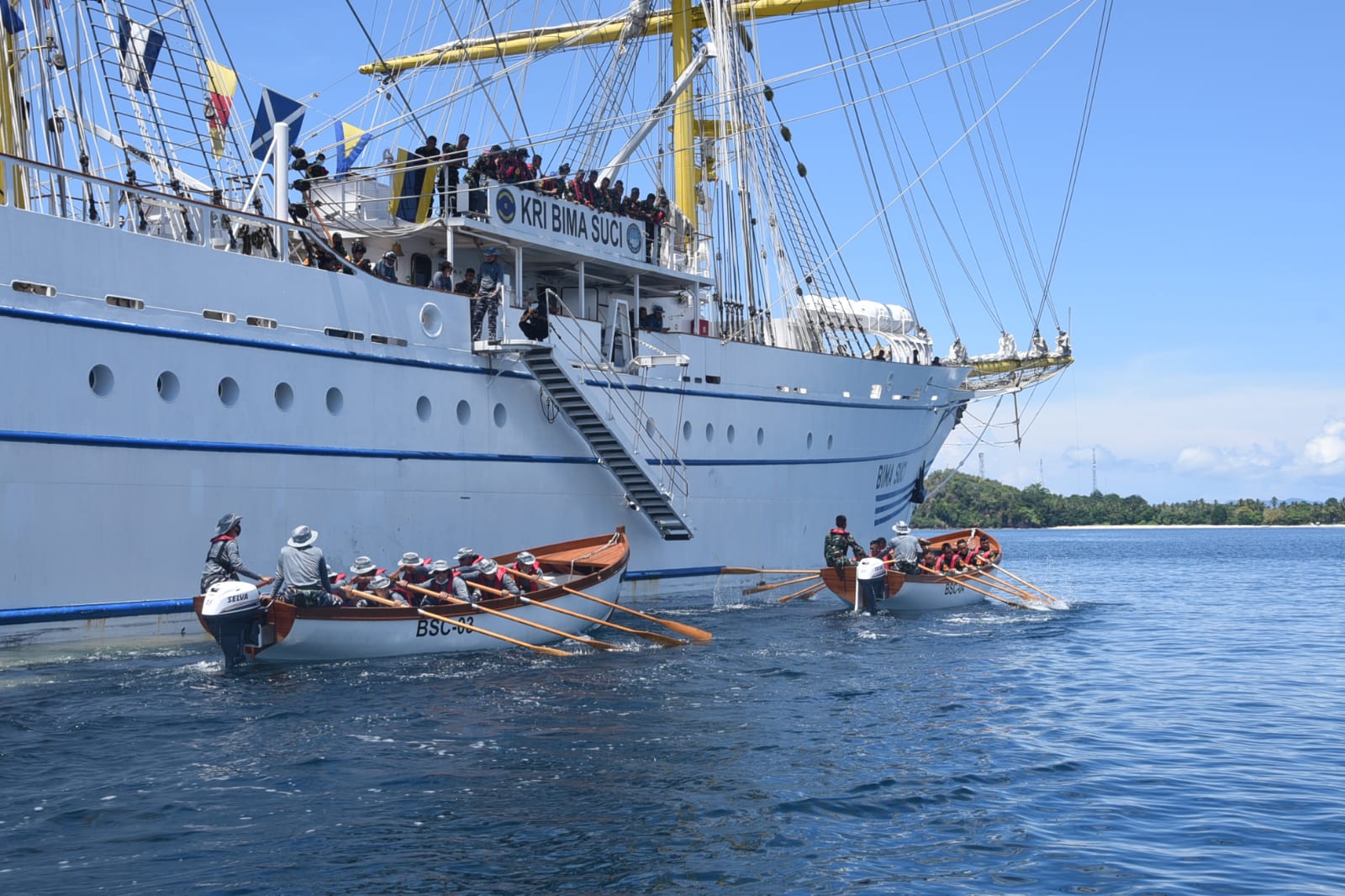 KRI Bima Suci yang membawa 89 taruna AAL Tingkat lll Angkatan ke-68 dalam pelayaran keliling Indonesia etape ke-4 dari Jayapura menuju Raja Ampat ini lego jangkar. Selain untuk menikmati alam Raja Ampat, lomba dayung ini juga untuk olahraga, menjaga semangat serta kekompakan semua personel yang menaiki KRI Bima Suci kali ini.
