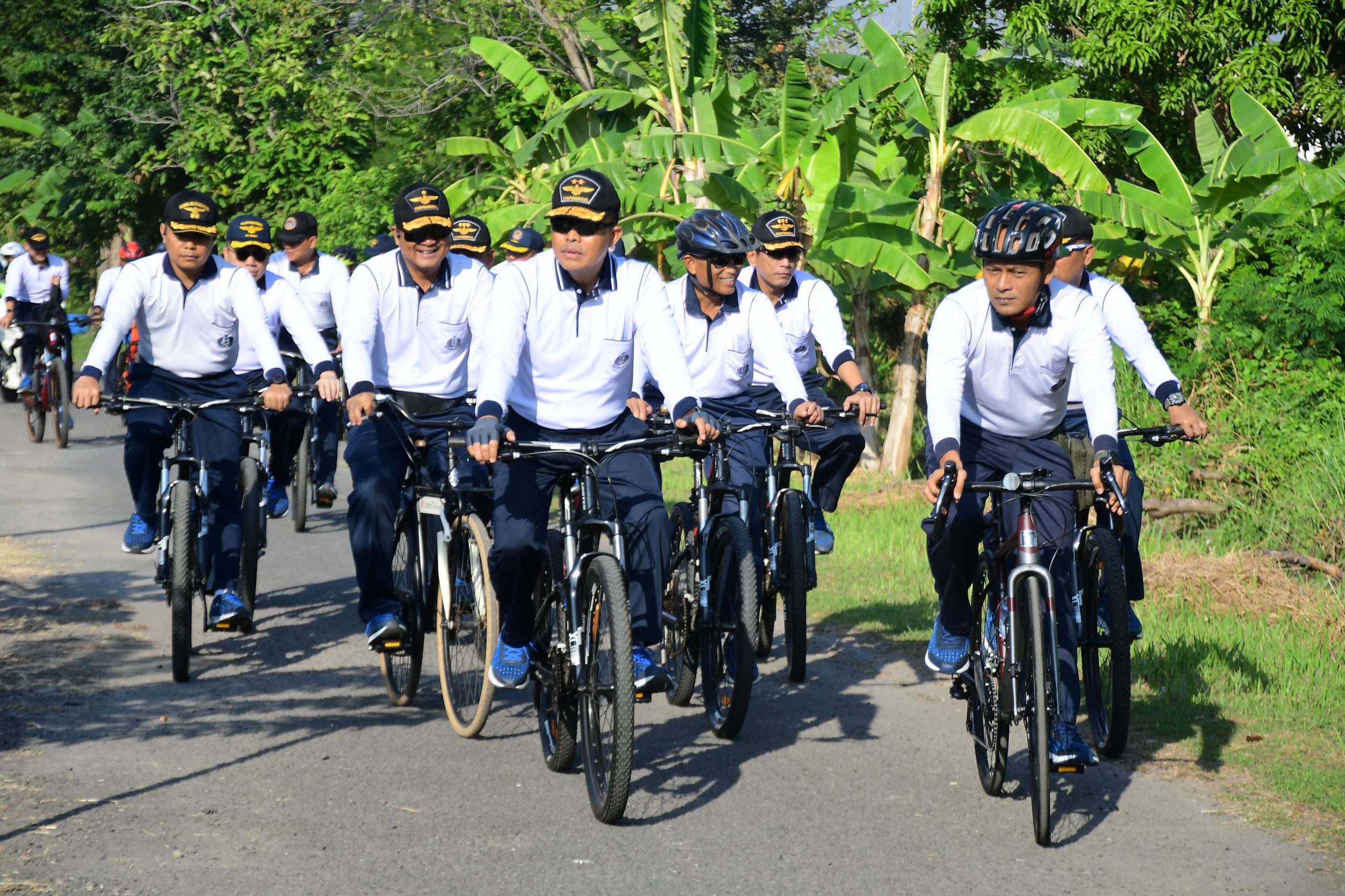 Menikmati segarnya udara pagi, Komandan Pusat Penerbangan TNl Angkatan Laut (Danpuspenerbal), Laksda TNl Sisyani Jaffar beserta para Pejabat Utama (PJU) dan Kepala Satuan Kerja (Kasatker) jajaran Penerbangan TNl AL wilayah Surabaya bersepeda menjelajahi kawasan Pangkalan Udara TNl Juanda, Selasa (30/7/2024).
