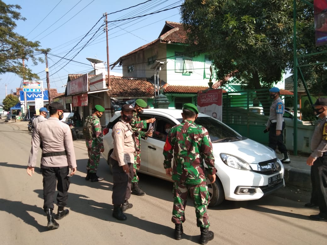 Polsek Cariu bersama TNI, Satpol PP dan Dishub melaksanakan Ops yustsi serta pembagian masker dalam rangka PPKM skala mikro dipimpin oleh Kapolsek Cariu Kompol Yufrialdi, SH, pada Kamis (27/05).