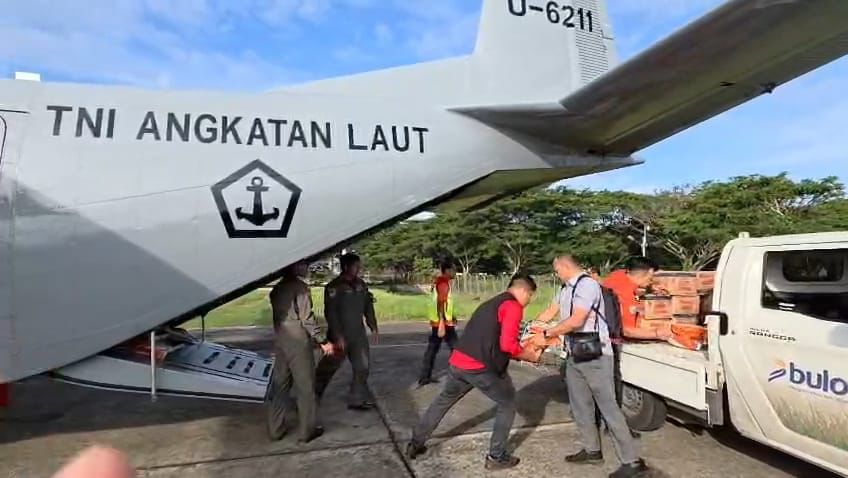 Pesawat Casa Aviocar U-6211 membawa logistik dari Banda Aceh yang terpusat di Lanud SIM, yang akan disalurkan kepada masyarakat Gayo Lues yang membutuhkan.